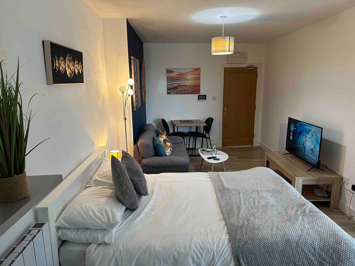 Mali privatni aneks u blizini centra grada. Besplatan parking preko puta. Na licu mjesta ako je rezervisano. Čajna kuhinja - mikrotalasna pećnica, čajnik, aparat za kafu, frižider, zamrzivač, sudopera. Ovo nije kompletna kuhinja. Kompaktna tuš-kabina, mali umivaonik za ruke/WC Utičnice za radni sto/bar za doručak. Veliki bračni krevet. Željeznička stanica Ragbi je na pešačkoj udaljenosti Grad – 5 minuta hoda. Wi-Fi/ Freeview Ako je potrebno, zatražite neaktivne stavke. Vešernica pored – mašina za pranje veša dostupna od 08:00 do 19:00. Sušilica/vešalica na zahtev.