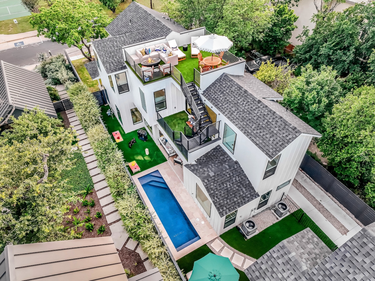Ovaj luksuzni dom inspirisan modernim stilom iz sredine prošlog vijeka, na uglu parcele u srcu najpoželjnijeg i najpraktičnijeg područja Ostina, Barton Hils, u potpunosti je nadograđen vrhunskim, prilagođenim završnim obradama. Ovaj arhitektonski dragulj obiluje zidovima prozora i prirodnim svjetlom. Njegova centralna lokacija omogućava jednostavan pristup svemu što grad nudi. Ovaj smještaj je idealan za one koji pohađaju SXSW, ACL, F1, UT Football ili jednostavno traže odmor u srcu grada.