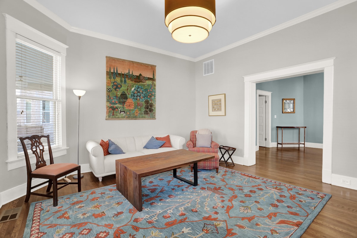 Zakoračite u odabrani starinski san 🌸- naše s ljubavlju stilizovano elegantno utočište spaja retro ličnost sa udobnošću. Ovaj šareni 3BR dragulj danima je prepun starinske atmosfere i ličnosti. Dva zabavna dnevna boravka🛋️, kompletna kuhinja 🍳 za užinu i ognjište u dvorištu 🔥 za kasnonoćni smijeh. Bilo da ste ovdje na porodičnom putovanju, samostalnom odmoru⛳️, golfu ili samo dobroj atmosferi - ovaj smještaj u Memfisu donosi šarm i udobnost. Minute od Midtauna/centra grada zabavno!