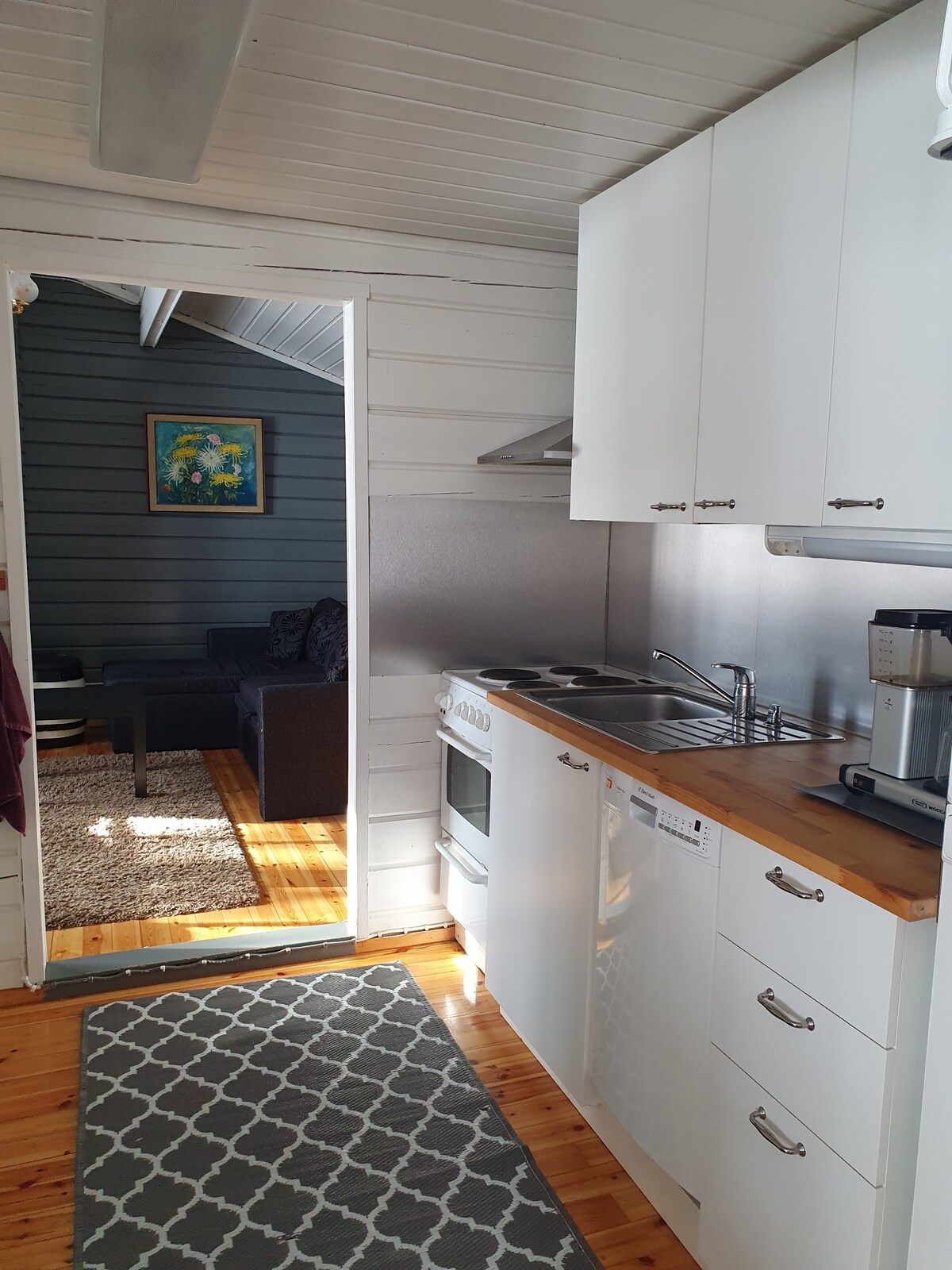 U redu u dvorištu kuće, mirna mala seoska kućica pored jezera. Teren za golf je udaljen 200 metara. Odlično mjesto za dvoje, seoska kuća ima kauč na razvlačenje, oba kreveta širine 1200. Do centra Siilinjärvi 3 km, do Kuopio 20 km. Dostupno je punjenje za električni automobil uz dodatni trošak od 11kw. U smještaju se nalazi frižider, zamrzivač sa odjeljkom, mikrotalasna rerna, aparat za kafu, plinski roštilj. Električna sauna, tuš, WC šolja. Kirija uključuje posteljinu, peškire i završno čišćenje.