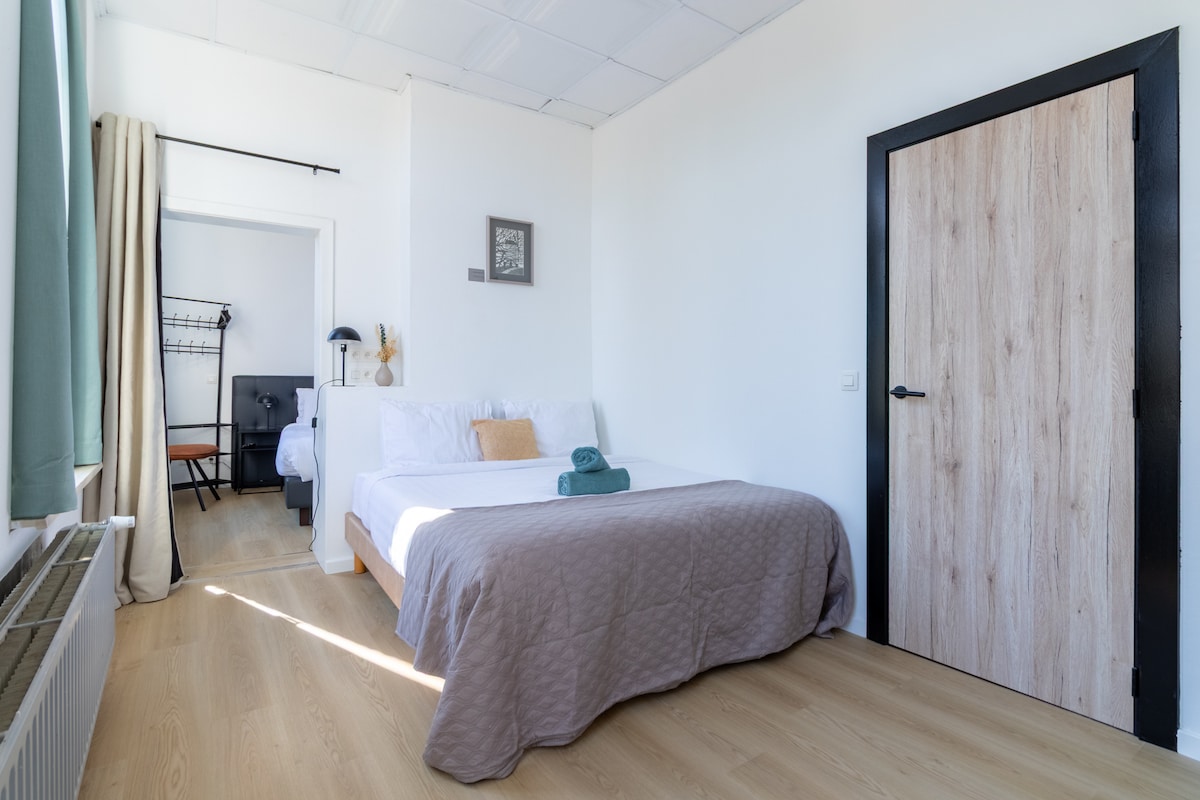 Dobro došli u svoj divni porodični apartman u hotelu Malleberg, smešten u živopisnom srcu Briža. - Ima dvije spavaće sobe koje mogu da prime do pet gostiju. - Uključuje privatno kupatilo sa odvojenim WC šoljom. - Moderni sadržaji kao što su televizori ravnog ekrana i sadržaji za kafu/čaj. - Neobavezni veganski doručak dostupan je u srednjovjekovnom podrumu. - Nalazi se na samo minut od pijace. - Okruženi restoranima, kafićima i buticima. - Klima-uređaj, Wi-Fi i bezbjednosne funkcije.