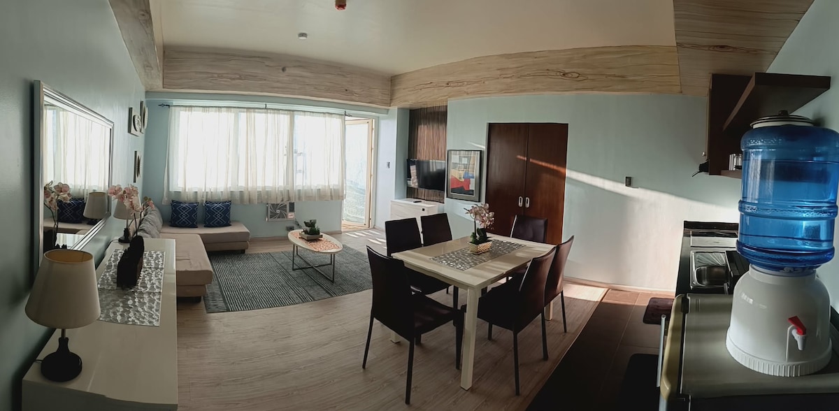 Boravite u potpuno opremljenoj jedinici sa 1 spavaćom sobom u odmaralištu Tambuli, Lapulapu. Jedinica ima 1 sobu 2 kreveta (1 bračni krevet, kauč na razvlačenje i dušek na podu) Kupatilo sa bojlerom, potpuno opremljena kuhinja, balkon sa odličnim pogledom na more! 🛜 Pristup internetu od 300 MBPS BESPLATNO korišćenje kondominijuma između tornjeva A i B, osim srijede tokom održavanja. Pristup sadržajima odmarališta Tambuli je zasebna naknada. Nema doručka Posebna ponuda! Boravite 15 dana do 1 mjeseca i uživajte u besplatnom dnevnom korišćenju odmarališta Tambuli!