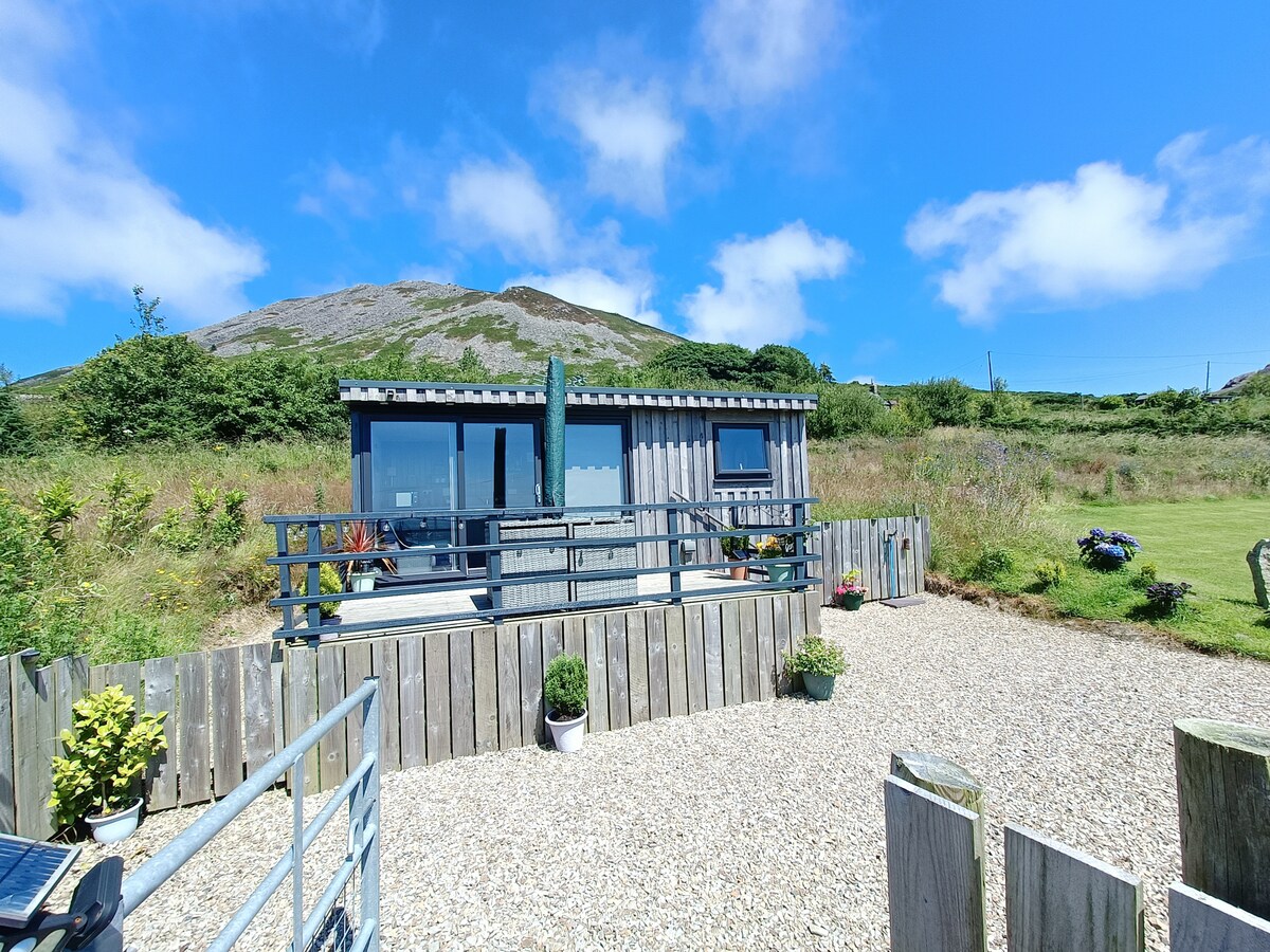 A peaceful and beautiful location perfect for couples. Our spacious and modern hut is located right in the middle of the Llyn Peninsula, at the foot of the mountain, and a convenient drive to nearby towns and beaches (10-15 mins). Enjoy stunning views of both sea and mountain complete with your own large fenced garden. One dog welcome charged per night. No XL Bullies. All you could need, including bed linen and a set of towels! Small complimentary hamper, tea and coffee & sugar provided.