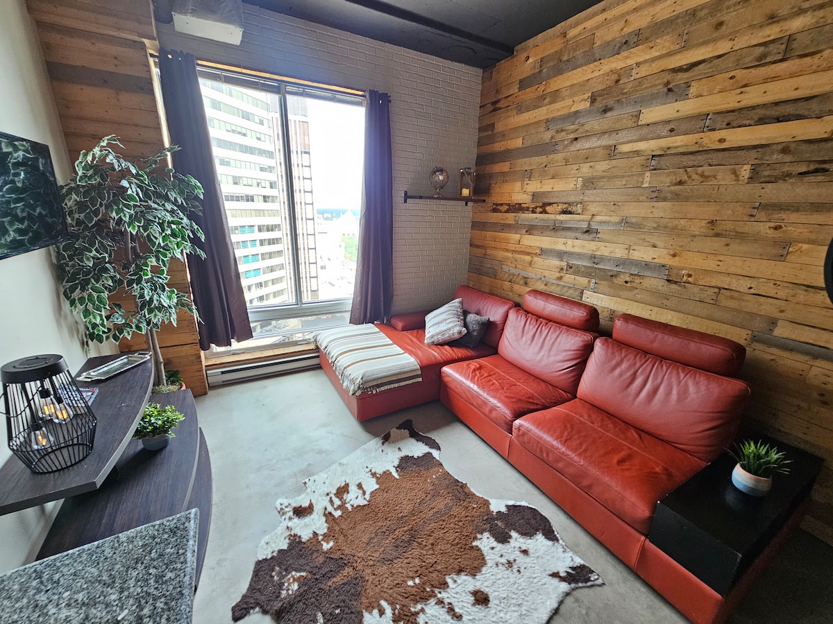 Western Charm | Downtown Edmonton Condo | LRT Access | A/C Air Conditioning Udobno potkrovlje tipa 1BR inspirisano zapadnjakom u srcu centra YEG-a. Uživajte u rustikalnom uređenju, udobnom krevetu, velikom podesivom kauču i čajnoj kuhinji. Koraci od Džasper avenije i odmah iznad LRT-a za kratka putovanja do Rodžers Plejsa, ICE Districta, restorana, noćnog života i vrhunskih atrakcija. Spava 4. Rezervišite smještaj danas i doživite centar Edmontona kao mještanin Bilo bi nam drago da vas ugostimo - pošaljite nam sva pitanja!