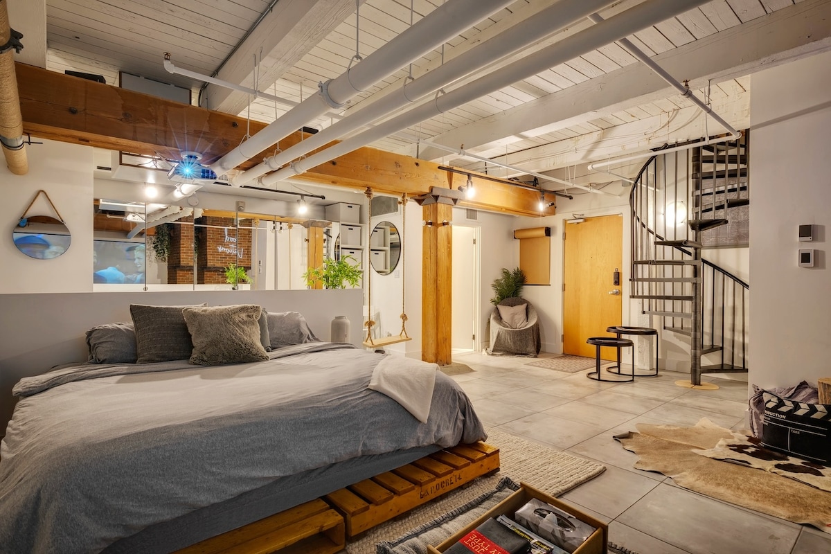 Doživite srce centra Edmontona u jedinstvenom potkrovlju koje se nalazi u istorijskoj zgradi Kembridž Lofts. Minutes from the Ice District, Shaw Centre, Brewery District, Grant MacEwan University and more! ✔ Nalazi se ❤u centru grada ✔ Savršeno za kraće ili duže boravke ✔ 5 minuta do Rodžers Plejsa Staze ✔ riječne doline u blizini ✔ Direktan pristup LRT-u i pedalama ✔ Brzi Wi-Fi ✔ Samostalna prijava ✔ Opremljena kuhinja Praonica ✔ veša u apartmanu ✔ Profesionalno očišćeno Rezervišite još danas da biste rezervisali doživljaj u potkrovlju DT-a kod nas!