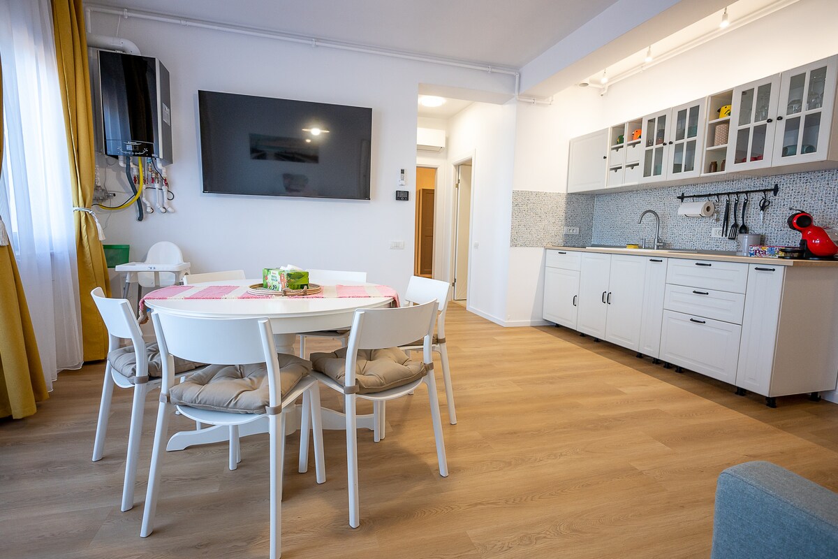Nedavno renoviran stan sa izloženom ciglom i jedinstvenim dizajnom koji se nalazi usred OVID Skvera, centralne turističke tačke Starog grada Tomisa (sada se naziva Konstanca) , u blizini najvažnijih istorijskih znamenitosti u gradu i plaže. **Pročitajte kućni red pre nego što rezervišete*