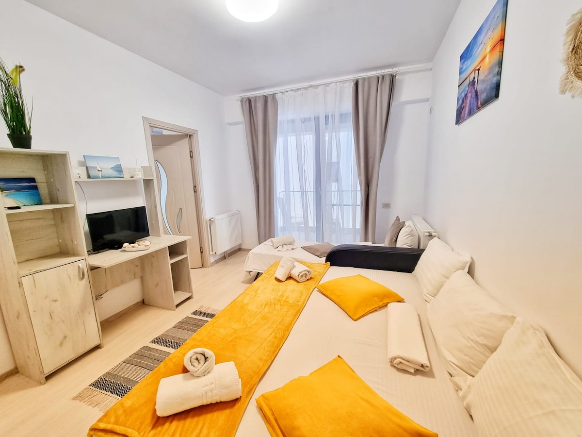 Apartment " Mara " Eforie Nord is located within the Apolonia Complex, located on the cliff. Potpuno renoviran i opremljen 2024. godine, nudi sanjiv boravak, na samoj obali mora. Ima spavaću sobu i kupatilo, otvorenu kuhinju, koja omogućava pripremu brzog posuđa, a dnevna soba ima kauč na razvlačenje, stan je idealan za 4 osobe. Balkon je veoma prostran i pruža nezaboravan pogled.