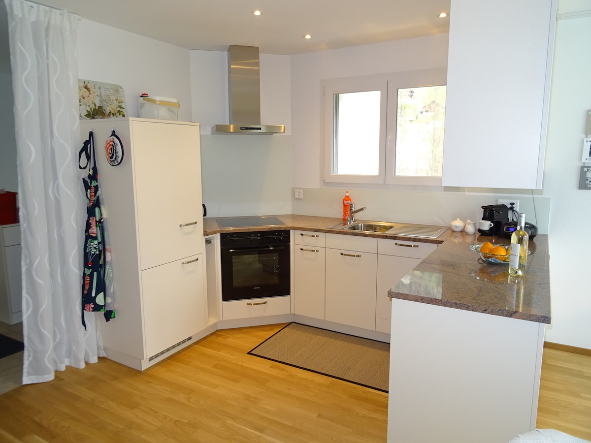 Udoban i moderan apartman sa panoramskim pogledom na jezero Thun nalazi se u prizemlju novo renovirane kuće za odmor. Nalazi se u mirnom delu sela i polazna je tačka za izlete u planine i jezera. Idealno za 4 osobe. Terasa sa pogledom na jezero i 2 ležaljke, veliki prostor za roštilj sa 1 kutijom drveta Uključena je panoramska mapa (različiti popusti) U blizini: Krattigen Dorf/Post autobuska stanica (4 minuta hoda), seoska prodavnica, sportski teren, planinarske staze, Tun, Spiez, Aeschi, Interlaken, Beatenberg, Bern