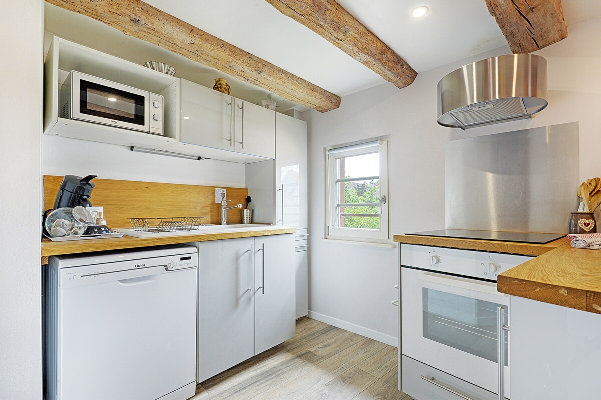 Privatni smještaj na drugom spratu alzaške kuće u istorijskom srcu jednog od omiljenih sela Francuza. Šarmantan apartman, potpuno renoviran, koji se sastoji od spavaće sobe sa bračnim krevetom, kupatila sa tuš kabinom i toaletom, svetle dnevne sobe sa opremljenom kuhinjom, kaučem na razvlačenje koji služi kao treći krevet. Na balkonu s pogledom na selo i bedeme Stan nije prilagođen posebnim potrebama za osobe s invaliditetom
