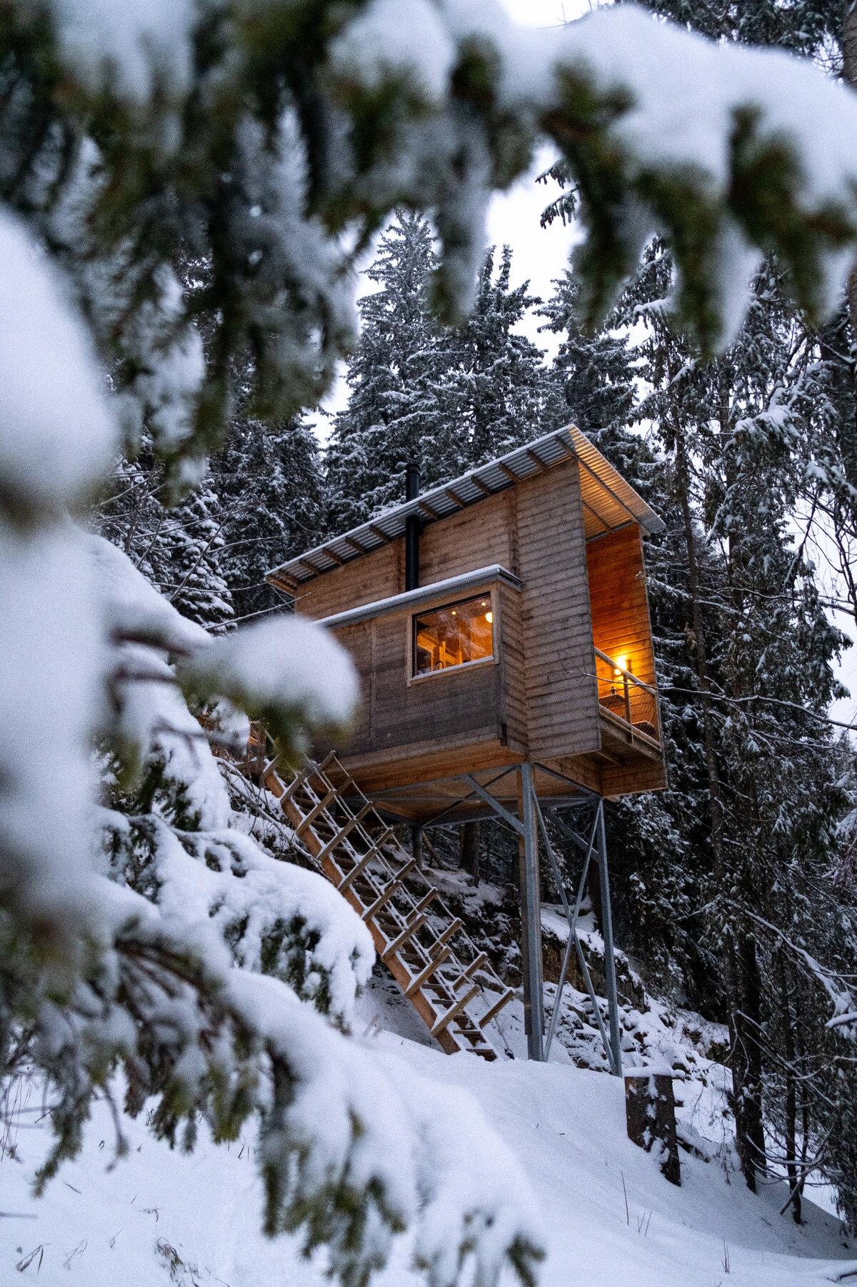 Brvnare LAUV Treetop su doživljaj u kojem se arhitektura susreće s prirodom. Za one koji žele da uživaju na otvorenom. Okružen prelepom prirodom. Kratka udaljenost do jezera, odlična planinarska područja, staze za kros ispred vrata, cipele za snijeg za besplatan kredit. Kuća na drvetu koja ima sve sadržaje. Zapanjujući pogled na najveće norveško jezero, Mjøsa. Knaus se nalazi na planinskom štapu u pozadini. Sa svojim čeličnim stubovima visokim 6 metara na prednjoj strani, brvnara besni između drveća. Divne pločice u visini sa tiganjem i klupama.