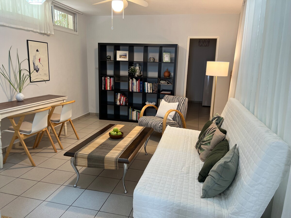 Otkrijte utočište pogodno za goste! Udoban bračni krevet i udoban kauč za TV i opuštanje. Uživajte u doručku i vinskim večerima na otvorenom za stolom u dvorištu. Dovoljno prostora u ormaru i savršen trpezarijski/kompjuterski sto. Obezbeđeni su peškiri za plažu i disaljke. Jednostavno parkiranje na ulici. Stanovnici Eilata od 52 godine, ponosni na naše recenzije i željni da vas ugoste! Rezervišite sada za divan boravak!