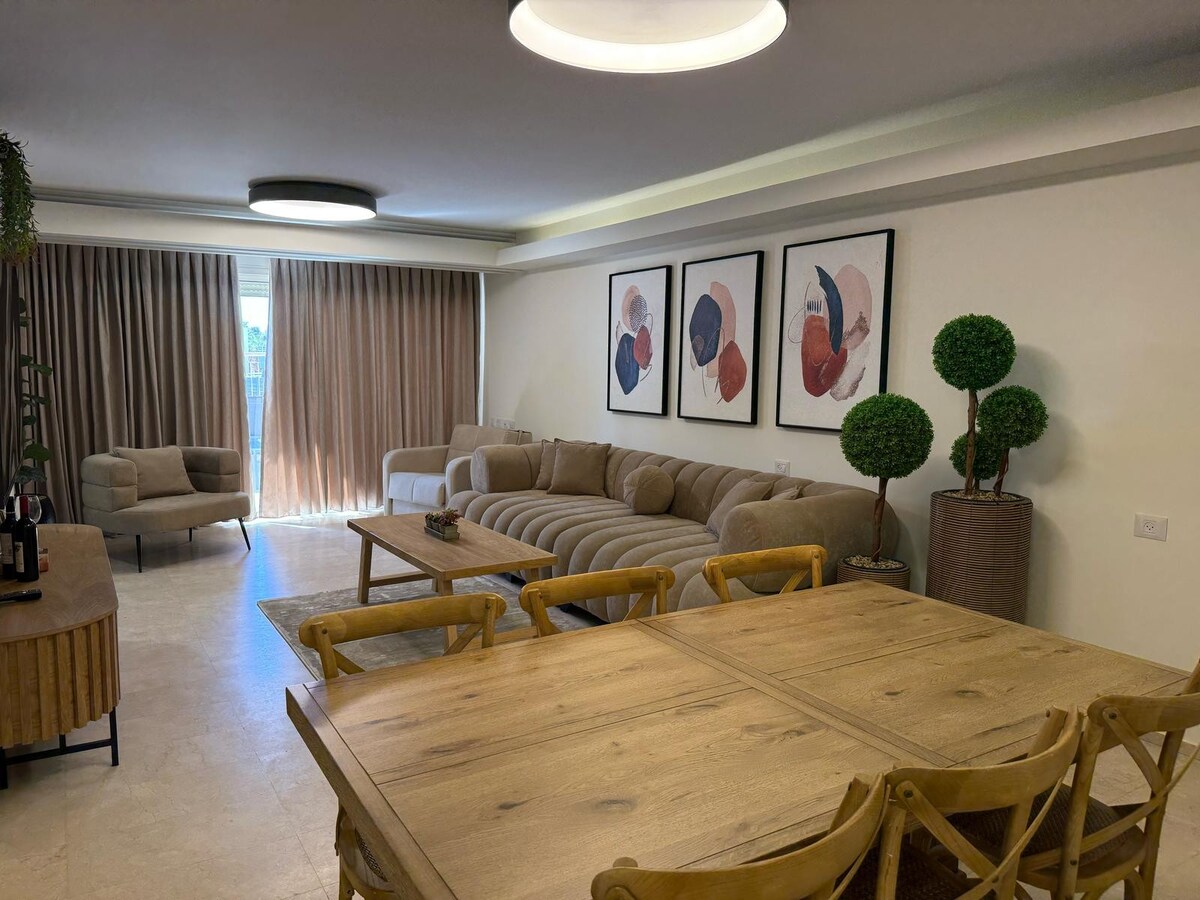 Pobjegnite u naš moderan stan u centru grada s predivnim pogledom na obalu, zaliv i planine. Savršen za porodice, ovaj svijetao, minimalistički prostor je vaša spokojna baza za istraživanje. Uživajte u privatnom balkonu, brzom Wi-Fi mrežom i pristupu zajedničkom bazenu i teretani. Savršeno mjesto za istraživanje najboljih atrakcija grada.