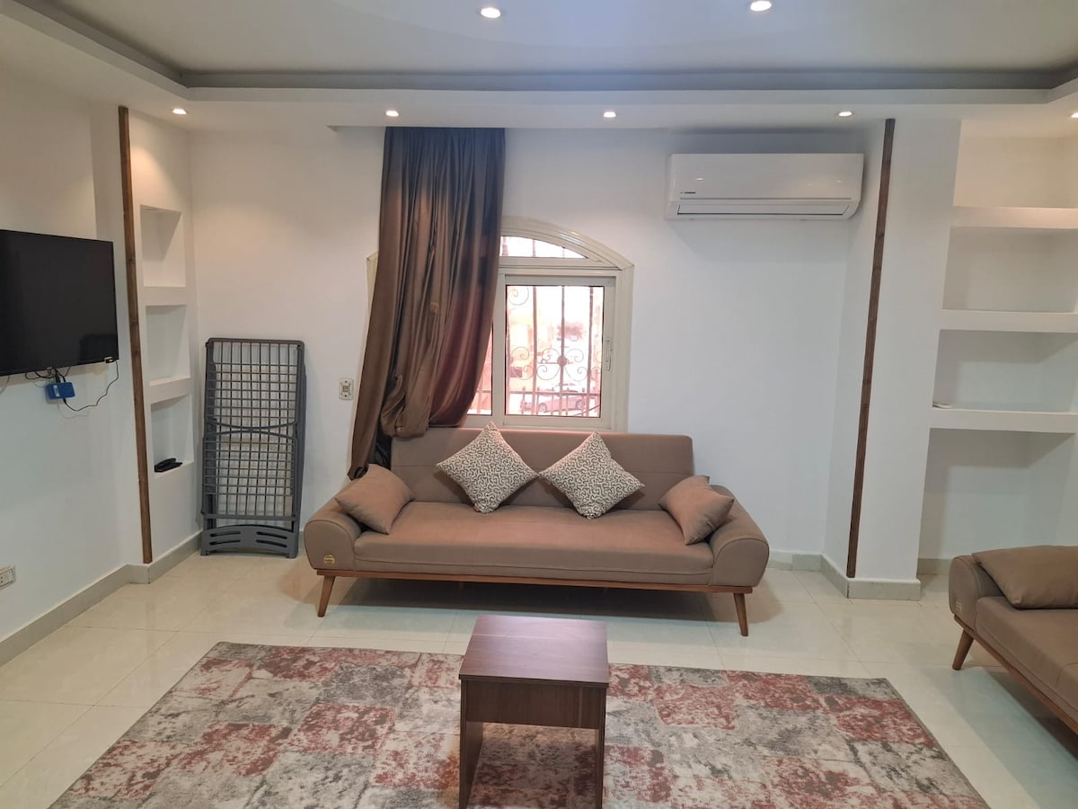 ✨ Odsjednite u modernom, novouređenom stanu u kompleksu One Katameya ✨ Savršeno za porodice, parove, prijatelje ili poslovne putnike. Odlična 📍 lokacija na kružnom putu – samo 5 minuta od gradskog tržnog centra u Kairu i u blizini Maadija i Novog Kaira. 🏡 Uživajte u udobnom namještaju, potpuno opremljenoj kuhinji, brzom Wi-Fi-ju, pametnom TV-u i klima-uređaju. Elegantan smještaj u centru grada koji kombinuje udobnost, praktičnost i odnos cijena-kvalitet.