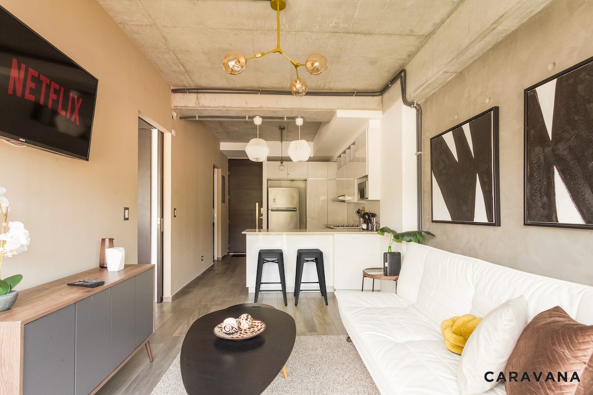 ★NEMA NAKNADE ZA USLUGE AIRBNB-A!!★ Ekskluzivna pogodnost za GOSTE KARAVANE Osjetite doživljaj boravka u novom stanu Guate-bella pored Karavane elegantnog i elegantnog dizajna, u kombinaciji s bijelim i sivim zidovima koji spajaju spokoj i spokoj. Imaćete priliku da odsjednete u području CAYALA u blizini mnogih restorana, maloprodajnih objekata i američke ambasade. Stan Guate-bella ima zajedničke sadržaje kao što su bazen, teretana i zajednički radni prostor.
