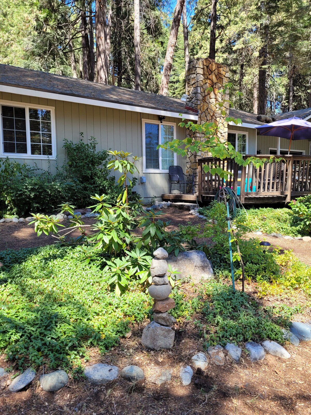 A Mountain Rose is a cozy, 2-bdrm home in the magnificent pines & cedars of Pollock Pines in the Sierra Mountains. Drveće je bogato, a mirisi koje šire su opuštajući i osvežavajući! Naš mali dom je odlično mjesto za romantični odmor, za porodice ili prijatelje. Nalazimo se na 2 milje od autoputa 50 i oko 50 milja od Sakramenta ili Soa. Jezero Taho. Nalazi se na kratkoj vožnji od Epl Hila i Plaservila. Vozači električnih vozila, uz prethodno odobrenje, koriste punjač tipa 2 za 30 USD. Kućni ljubimci MORAJU IMATI preliminarno odobrenje; dodatnih 20 $ po noćenju po kućnom ljubimcu.