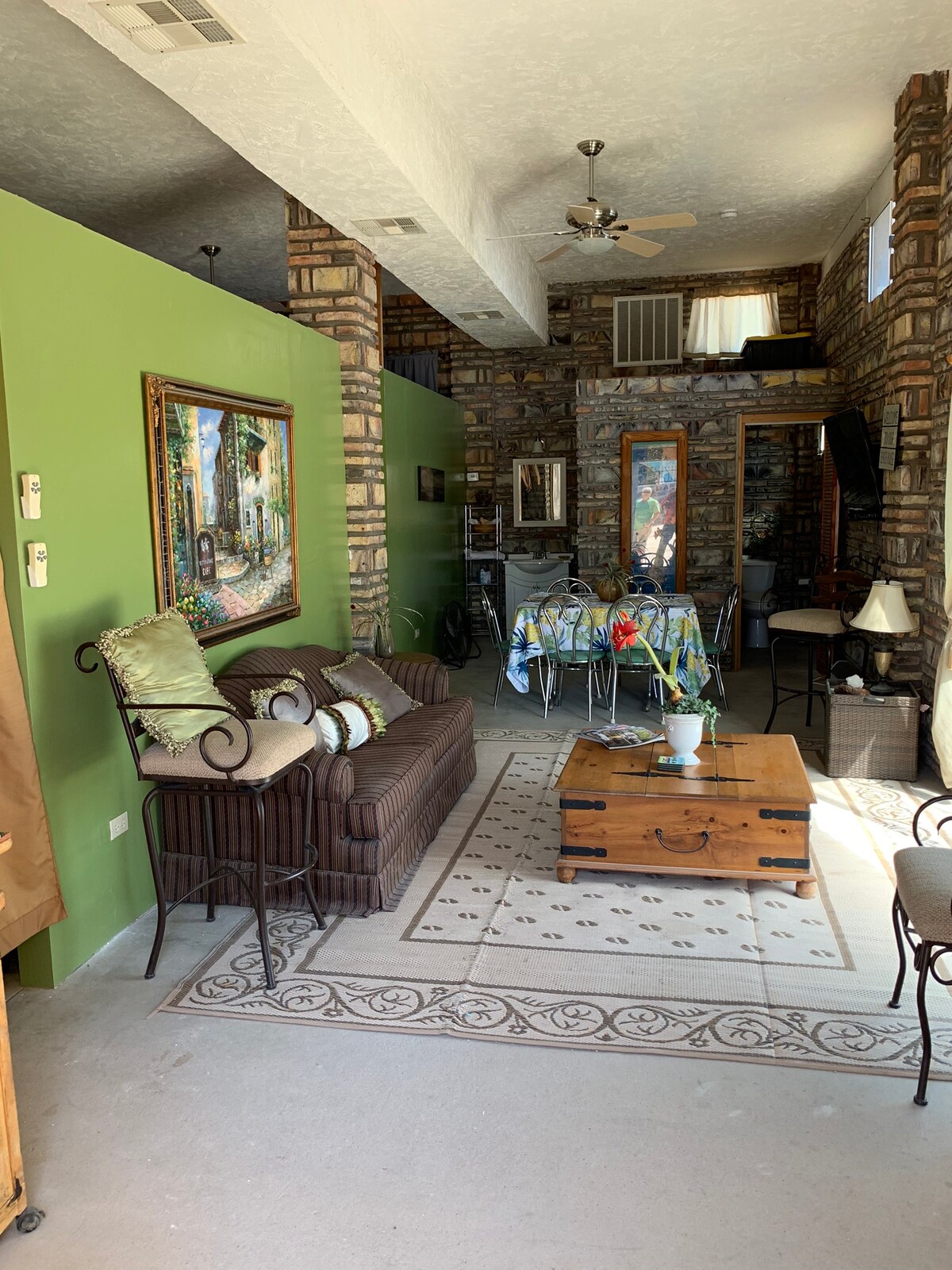 Casita Luna at El Dorado Ranch offers privacy, comfort, and stunning mountain & sea views. Enjoy your own driveway, entrance, and safe parking for 2 cars. Perfect for 2 guests, this cozy retreat features a private hot tub, spacious bathroom, cold A/C, outdoor kitchen with BBQ, compact indoor kitchen, foam queen bed, sofa bed, smart TV, fast WiFi, dining table/desk, mini fridge, microwave, fire pit, and a porch with outdoor dining set. Everything you need for a relaxing desert escape.