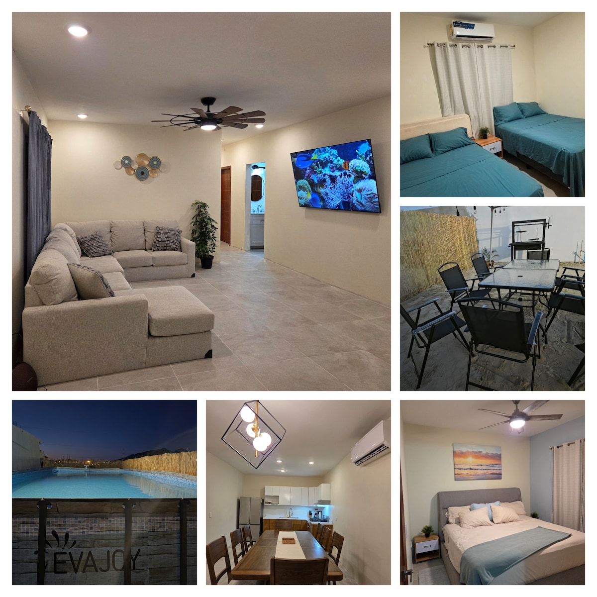 Uživajte u ovoj kući od 70 m2, idealnoj za one koji traže zaseban prostor. Ima kuhinju, dnevni boravak, 2 spavaće sobe i 1 kupatilo. Opustite se u spoljnoj trpezariji sa roštiljem. Prostor za dva automobila u sklopu objekta i još mnogo toga napolju. Samo 400 metara od benzinske stanice, Oxxo, 7Eleven, ispred Dunasa i 980m od plaže (15 minuta hoda), tako da u svakom trenutku možete uživati u moru i suncu. Savršeno za udoban boravak i blizu svega što vam je potrebno, ali daleko od buke