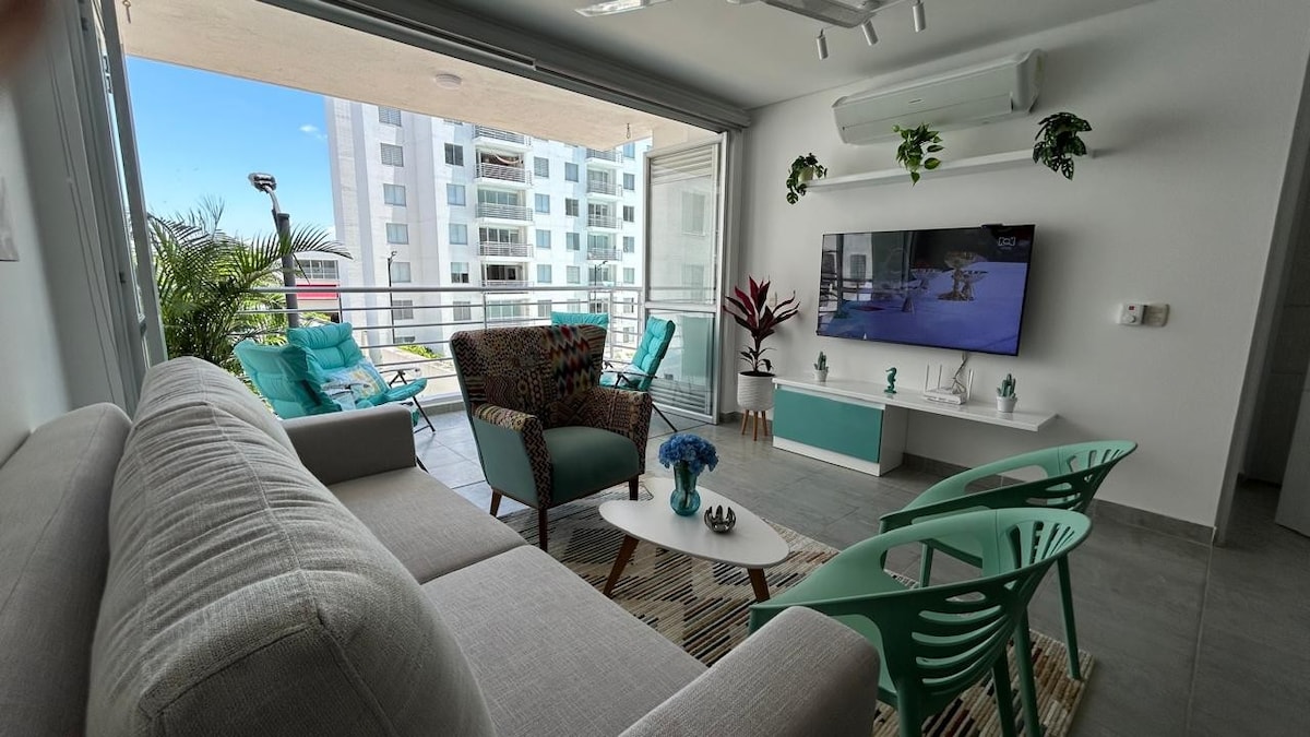 Relax and enjoy unforgettable moments with your family or friends in this place that offers comfort, privacy, and tranquility. With all the amenities inside: Spacious and comfortable rooms with air conditioning Swimming pool with outdoor furniture Ping pong table Internet TV Fully equipped kitchen Covered communal parking if required Spacious and comfortable living and dining areas Plus beautiful spaces in the condominium We look forward to seeing you 🍀✨☀️