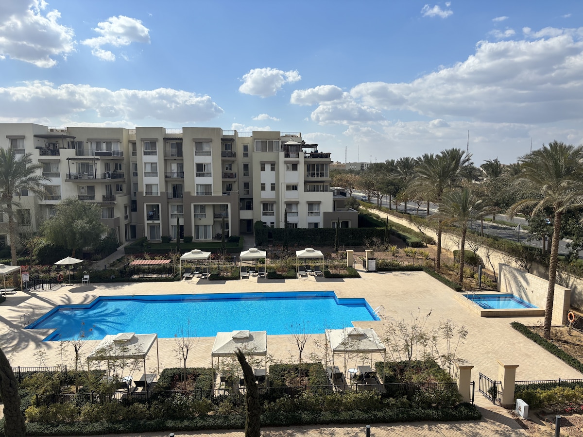 Pobjegnite u naš spokojni stan na vrhu brda u prestižnoj ograđenoj zajednici u gornjem dijelu Kaira. Savršeno za porodice ili poslovne putnike, ovo elegantno utočište nudi pogled na horizont koji oduzima dah s privatne terase. Uživajte u luksuznim sadržajima i udobnom boravku u našem nedavno renoviranom domu, dizajniranom za vrhunsku udobnost i stil.