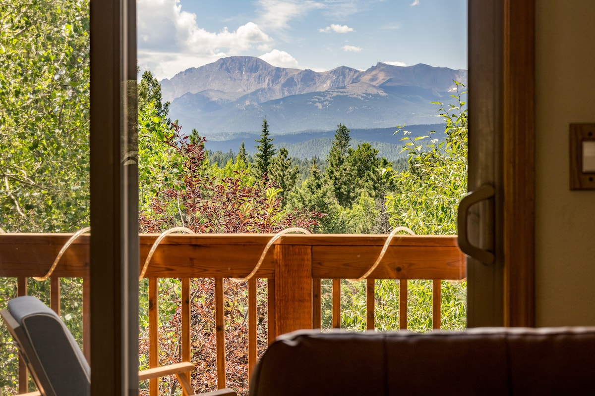 Modern meets mountain in this gorgeous getaway. Amazing views of “Purple Mountains Majesty”, Pikes Peak, as referenced in the famous anthem. All VIEW pictures taken from the deck! -HOT TUB w/ view of mountain ⇹ PLAY GROUND for the kids ⇹ GAME ROOM: Air Hockey, Ping Pong, Foosball, Pool Table, and Corn hole. ⇹ Luxury Shower: 6 heads & heated floors ⇹ Deck with view of mountain and backyard patio with firepit. ⇹ Activities: See Guidebook, my pictures, or TripAdvsior. -Peaceful mountain escape