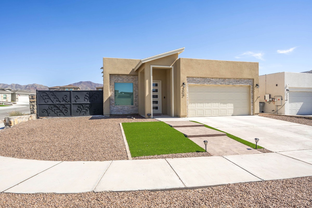 Doživite zabavan, čist i udoban boravak u Enchanted Hills Estates of El Paso, Teksas. Ovaj nedavno izgrađeni smještaj opremljen je svim sadržajima kako bi se osigurao opuštajući boravak, uključujući osigurani parking u garaži za dva vozila srednje veličine, a na raspolaganju je i veliko parking mjesto za kamp prikolice! Smještaj se nalazi na 5 minuta od ulica I-10 i US-375. Odmara se na zapadnoj strani El Pasa, u blizini Outlet Shoppes i bolnica Providence Transmountain Campus. Psi su dozvoljeni. Mačke nisu dozvoljene.