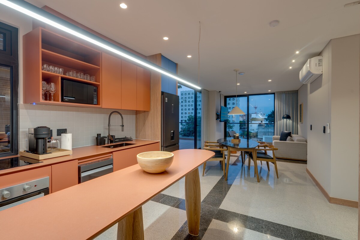 Moderno dizajnirana zgrada za najbolji pogled na Kali, ima stratešku lokaciju na sjeveru grada - biće vrlo lako isplanirati vašu posjetu! U blizini aerodroma, tržnih centara i gastronomskog područja. Stan sa velikim privatnim balkonom sa visećom ležaljkom i sofom, bračnim krevetom, radnim stolom, potpuno opremljenom kuhinjom, mašinom za pranje veša i kupatilom. Terasa s pogledom na grad Kali od 360 stepeni omogućiće vam da uživate u povjetarcu i zalascima sunca. Ima spoljni tuš i roštilj.
