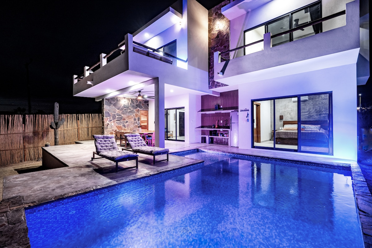 Uživajte u našoj luksuznoj vili u Baja Kaliforniji, savršenoj za par. Ima spavaću sobu sa dva bračna kreveta, dnevni boravak sa opremljenom kuhinjom i trpezarijom i kupatilo sa dovoljno tuš-kabine. Opustite se na terasi s pogledom na baštu i bazen ili na terasi za sunčanje i visećoj ležaljci. Uživajte u zvjezdanim noćima uz logorsku vatru i doručkujte u vrtu kaktusa. Idealna lokacija s pogledom na zaliv i pristupom aktivnostima na otvorenom. Vaše savršeno utočište udobnosti i spokoja!