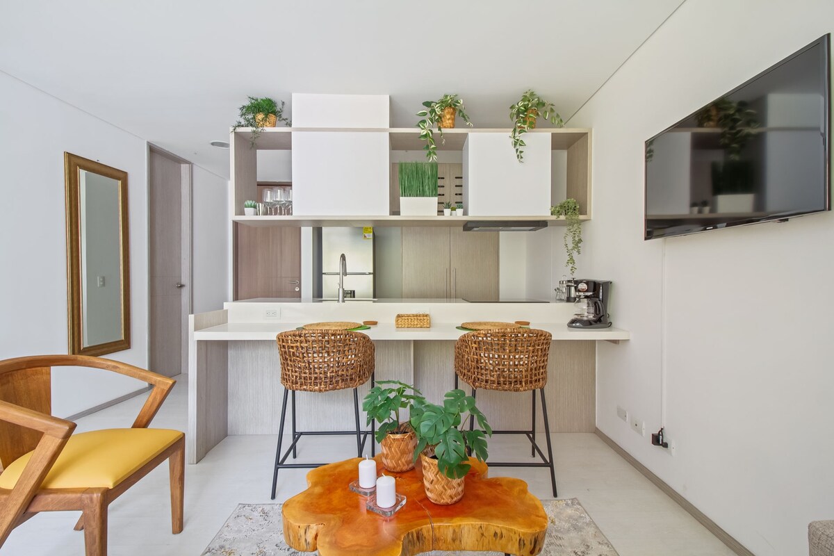 Porta Nova Suites - Samo 5 minuta od aerodroma MDE Rionegro. Naš udoban jednosobni stan sa 2 kupatila nudi bračni krevet, kauč na razvlačenje, balkon s pogledom na prirodu i jednostavan pristup bolnici San Visente. Uživajte u sadržajima naše zgrade: bazenu, spa centru, teretani, zajedničkom radnom prostoru i TV sobi. Uz privatni parking u garaži i svakodnevno čišćenje, vaša udobnost nam je na prvom mjestu. Doživite savršen spoj praktičnosti i opuštanja u „svom drugom domu.„ Rezervišite smještaj još danas!