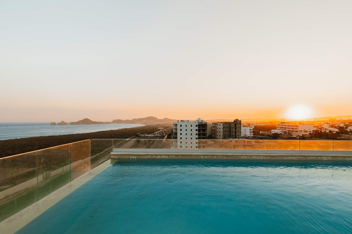 Bazen na krovu s pogledom na okean i luk | Modern Retr