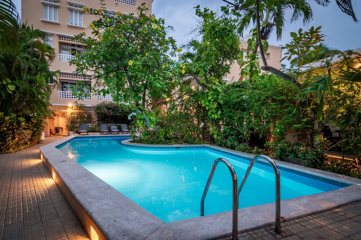 Ovaj prelepi novi studio nalazi se u istorijskom delu grada Getsemani, u gradu sa zidinama. Zgrada, koja je potpuno nova, savršena je kombinacija udobnosti i karipske elegancije. Garsonjera ima vrlo udoban balkon i privatni ambijentalni vodeni jacuzzi za osvježenje od vrućeg sunca. Nalazi se na pešačkoj udaljenosti od najboljih znamenitosti centra grada; restorana, barova, trgova. Savršeno za parove, solo putnike ili malu grupu od 4 osobe.