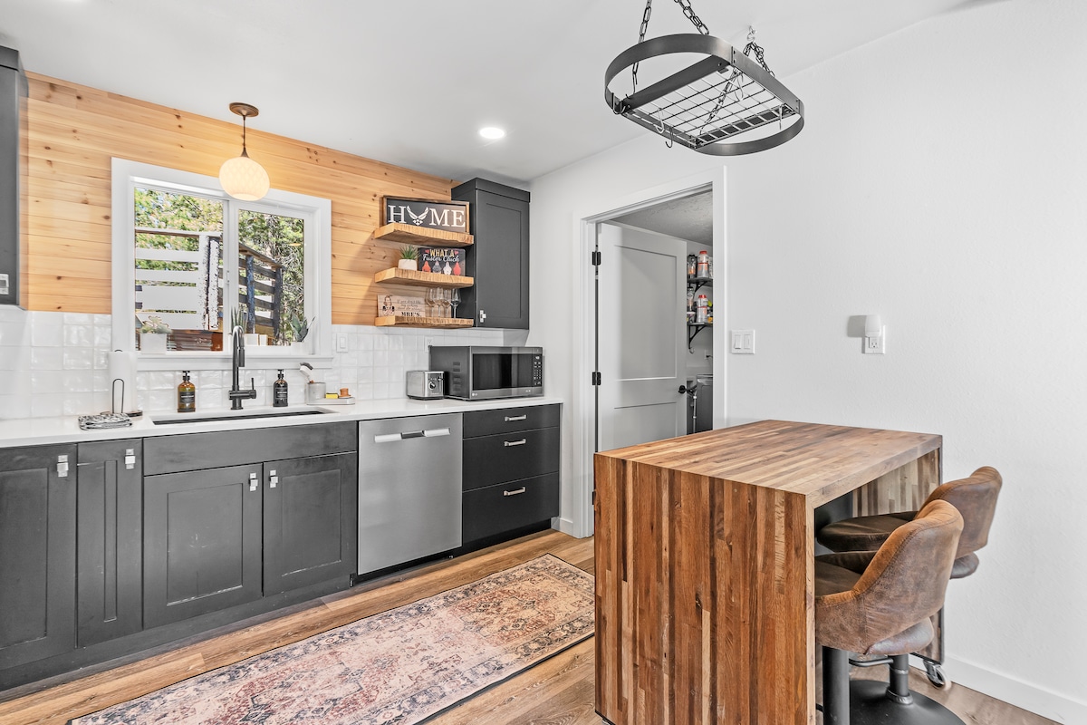 Privatni apartman za goste u našem novoizgrađenom domu, na samo nekoliko koraka od spa centra u stilu brvnare sa đakuzijem i infracrvenom saunom. Opustite se u mirnom šumovitom dvorištu, uživajte u brzom Wi-Fi mreži od 300 Mbps i gledajte zvjezdano nebo. Kamperska vatra za opuštanje, zalazak sunca za inspiraciju i Mliječni put uokviren visokim borovima Ponderosa – ovo mjesto je savršen spoj moderne udobnosti i ljepote prirode.