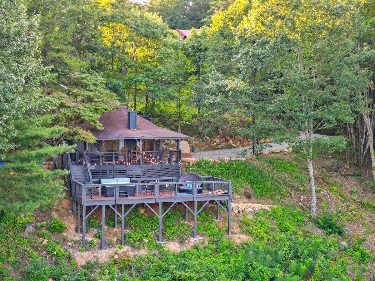 Nevjerovatan pogled na dugi mtn sve duge + terase sa hidromasažnom kadom. U blizini centra grada Elijay, Blue Ridge & Jasper za restorane i jedinstvene kupovine, Carters Lake & Cartecay River poznat po pecanju, vožnji čamcem, kajaku, tubingu. Tone pješačkih staza (Appalachian Trailhead) i vodopada u blizini. Bračni krevet na glavnom i spavaćem potkrovlju za dvoje velike dece (uzrasta 7-14 godina), a ne 4 odrasle osobe. Maksimalno 1 pas do 50 lbs je dozvoljeno 50 USD po boravku. Da biste potvrdili rezervaciju, morate da pošaljete vozačku dozvolu i obrazac za verifikaciju na panoramskom jeziku dot com.