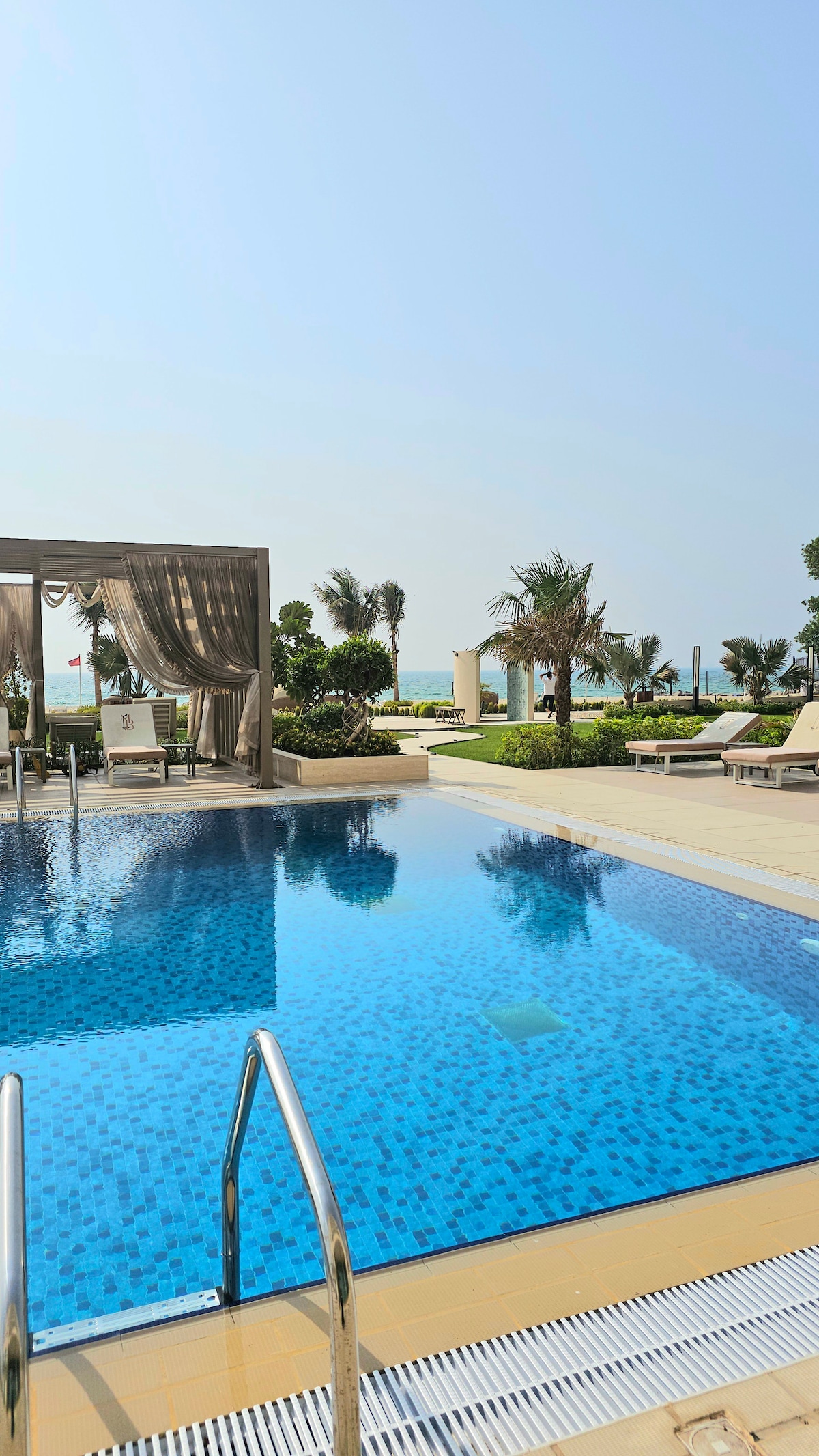 Potpuno renoviran apartman sa jednom spavaćom sobom, na nekoliko koraka od besplatne plaže, terena za golf, marine i u blizini luksuznih hotela Ričton, Valdorf, Hilton. 20 m. vožnje do Hajar planina. Danonoćno pristup konsijeržu/sefu za ključeve. Besplatan parking. Besplatno: Teretana, bazen ,dečiji bazen i dvoje dečijih igrališta . Predivna velika terasa sa dnevnim boravkom i pogledom na more. Spavanje: 1 bračni krevet+ 2 kauča na razvlačenje. Kuhinja: šporet, sa mašinom, frižider, Nespresso, toster. Ostalo: Wi-Fi, 55' Smart TV , Netflix, peškiri za plažu, kišobran
