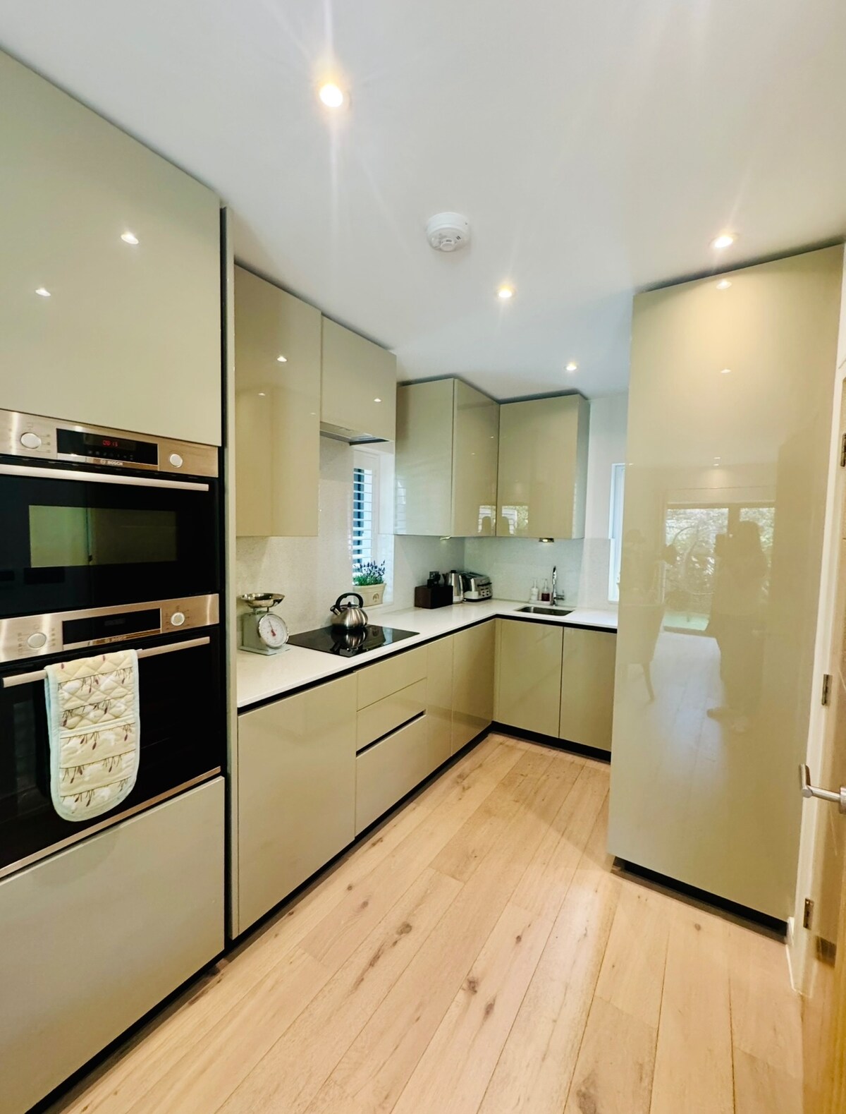 S pogledom na polja, ovaj luksuzni prostor na gornjem spratu vas poziva da se opustite. Izuzetno čist, miran i lijepo uređen. Opremljen svime što vam je potrebno i još mnogo toga. Skuvajte svježu kafu od zrna do šoljice uz Ninja Luxe aparat za kafu. Prenosite svoje omiljene emisije na pametnim televizorima, igrajte društvene igre kao grupa ili radite tamo gdje vas pogled inspiriše. Bez obzira na svrhu vašeg boravka, rada ili opuštanja - ovo je pravo mesto za to! London je u blizini, ali se osjeća kao da je svijet daleko. Uvijek ima mjesta za parkiranje!