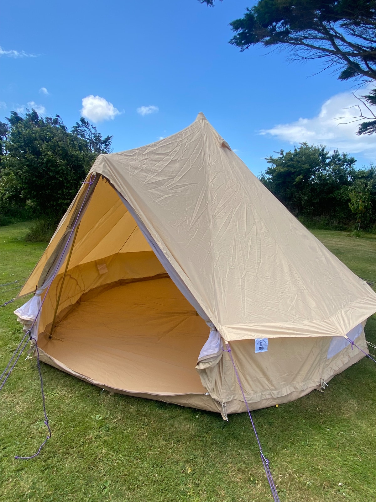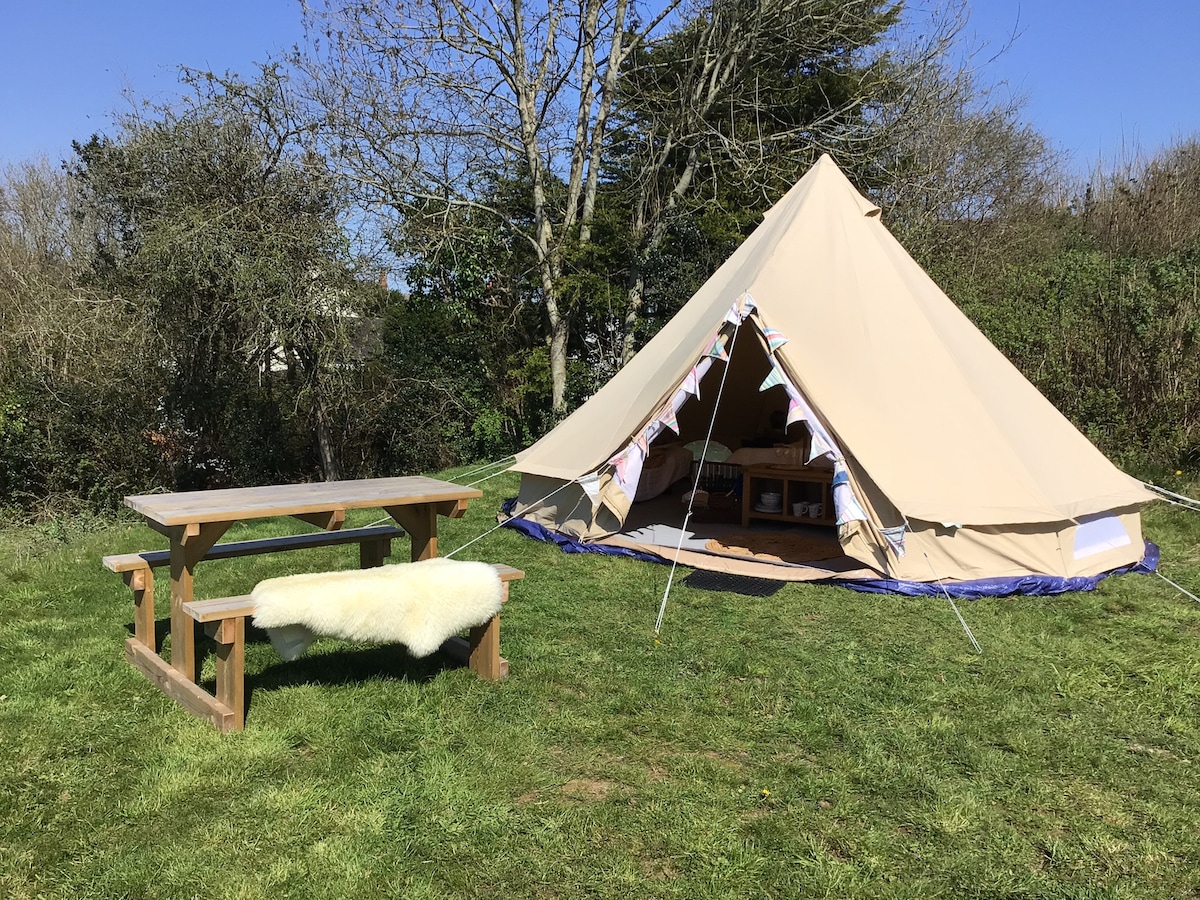 Off gird, self catered 6 meter bell tent on St Winnow campsite. A chance to enjoy the peaceful location by the river without having to bring your own tent. St Winnow campsite is a back to basics campsite located within an apple orchard right on the banks of the River Fowey. Its part of a working farm and boat yard where camper numbers are kept low to maintain a quiet and relaxing atmosphere throughout the campsite. Its 3 miles from Lostwithiel which has all the local amenities you may need.