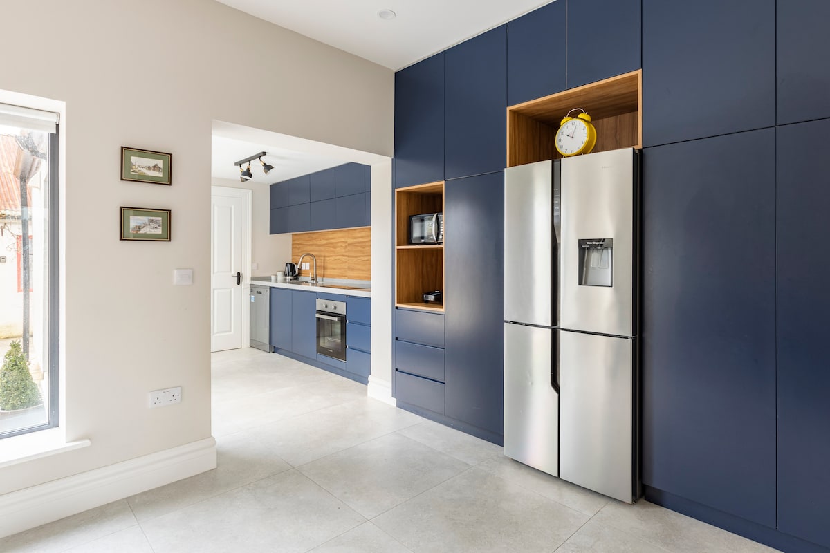 Uživajte u jedinstvenoj pauzi u ovom svetlom i modernom stanu na prvom spratu, na obalama reke Moj u selu Foksford. Uživajte u večernjem piću na balkonu pored reke ili posmatrajte užad kroz stakleni zid dnevne sobe. Nedavno preuređeni opremom hotelskog kvaliteta, postoje dvije dobro predstavljene dvokrevetne sobe, dva kupatila i veliki dnevni prostor otvorenog tipa. 67 Mbps Wi-Fi je savršen za rad na daljinu, sa rečnom šetnjom i istorijskim Foksford Vullen Mlinima u susedstvu.