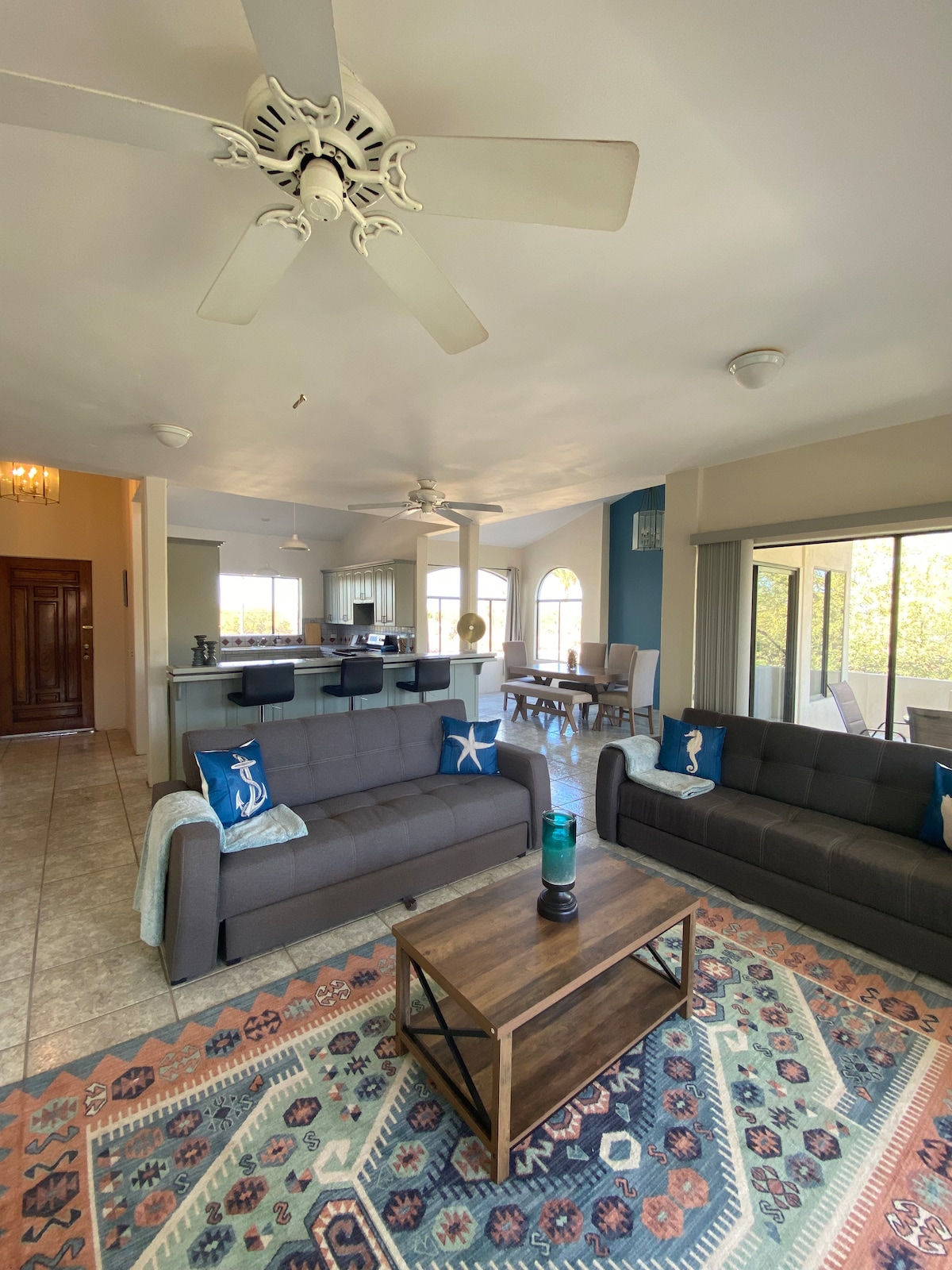 Koraci od plaže i srca Nacionalnog morskog parka Loreto Bej, ovaj šarmantni dom sa 2 spavaće sobe i 2 kupatila može da spava do 6 osoba i sa ljubavlju je održavan i uređen. Uživajte u jogi kafe i izlaska sunca na terasi na 2. spratu, uživajte u opuštajućoj večeri na freskama nakon roštiljanja ulov dana i uživajte u kaleidoskopskim zalascima sunca sa margaritom iz tornja na 3. spratu. Vaše opuštajuće parče raja čeka u mirnom selu Loreto Bej, gde planine dolaze da plivaju u Kortezovom moru!