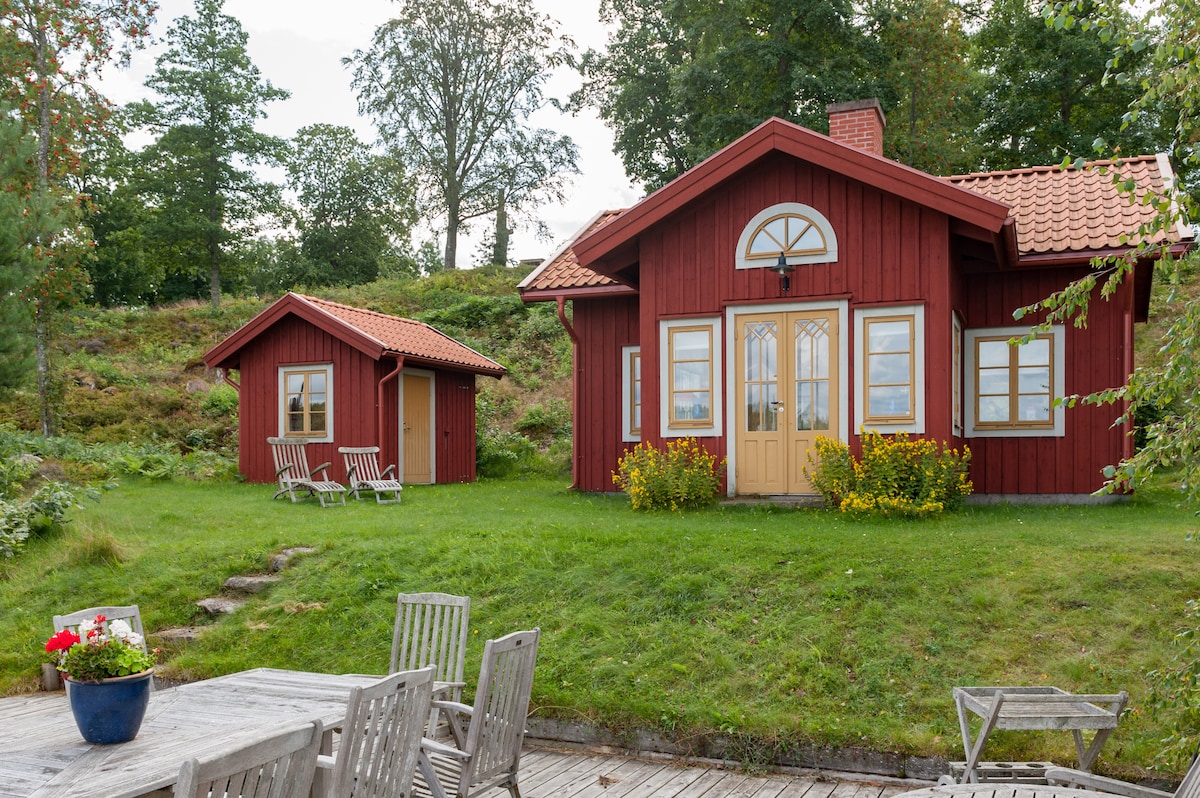 Sjöstugan - naš biser tik uz obalu jezera! Sopstvena kuća sa potkrovljem za spavanje, kuhinjom, prelepom velikom sobom sa kaminom i pogledom na jezero. Sauna na drva sa kupanjem u jezeru odmah pored. Đakuzi na pristaništu - uvek topao. Pristanište za kupanje 5 metara od vrata. Pristup čamcu. Ako želite da kupite kartu za pecanje, kontaktirajte domaćina. Drva za peć i saunu su uključena. Dvorište je ograđeno sve do jezera i naš pas bigl Vide je često napolju. On je dobar. Posteljina, peškiri i čišćenje su uključeni.