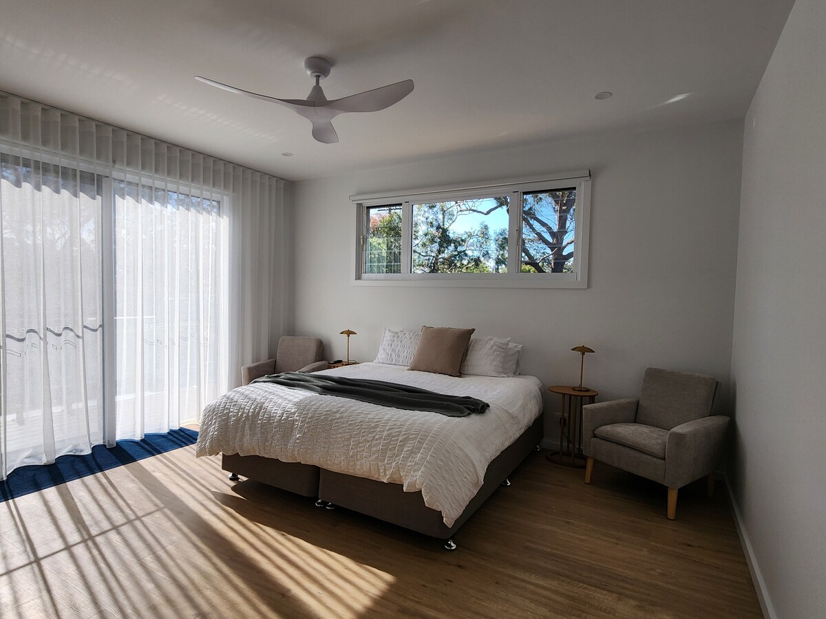Osjetite trenutno opuštanje dok uživate u spektakularnom pogledu na obalu iz ovog elegantnog stambenog prostora, samo 90 minuta južno od Sidneja i 700 metara hoda do plaže Seven Mile. Otvorite dvokrilce kako biste osjetili okeanski povjetarac i proširite prostor do prostrane terase. Ili se udobno smjestite pored kamina u hladnijim mjesecima. Sa doručkom i prostorom za opuštanje na otvorenom, bićete razmaženi mestima za okupljanje. Vaš pootch može da divlja u travnatom, potpuno ograđenom dvorištu i uživa u boravku na plažama pogodnim za pse u regionu.