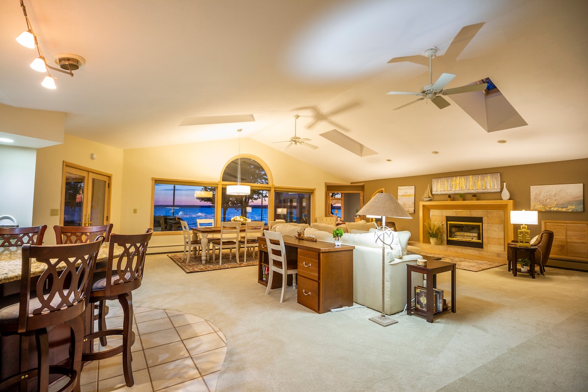 Ovaj zadivljujući odmaralište od 4000 kvadratnih metara nalazi se na obalama malog zaliva Mičigen u Mičigenu. Večerajte na prostranoj terasi na otvorenom, okupite se oko ognjišta, provozajte se kajakom ili uživajte u panoramskom pogledu na jezero. Ovaj odmor može da spava četrnaest osoba sa osam kreveta, kauč na razvlačenje i tri futona. Pametni televizori, mašina za pranje/sušenje veša, potpuno opremljena kuhinja, aparat za kafu Keurig, lonac za kuvanje, blender, plinski roštilj, kajaci, sto za stoni tenis u toplijim mesecima i oprema za vežbanje.