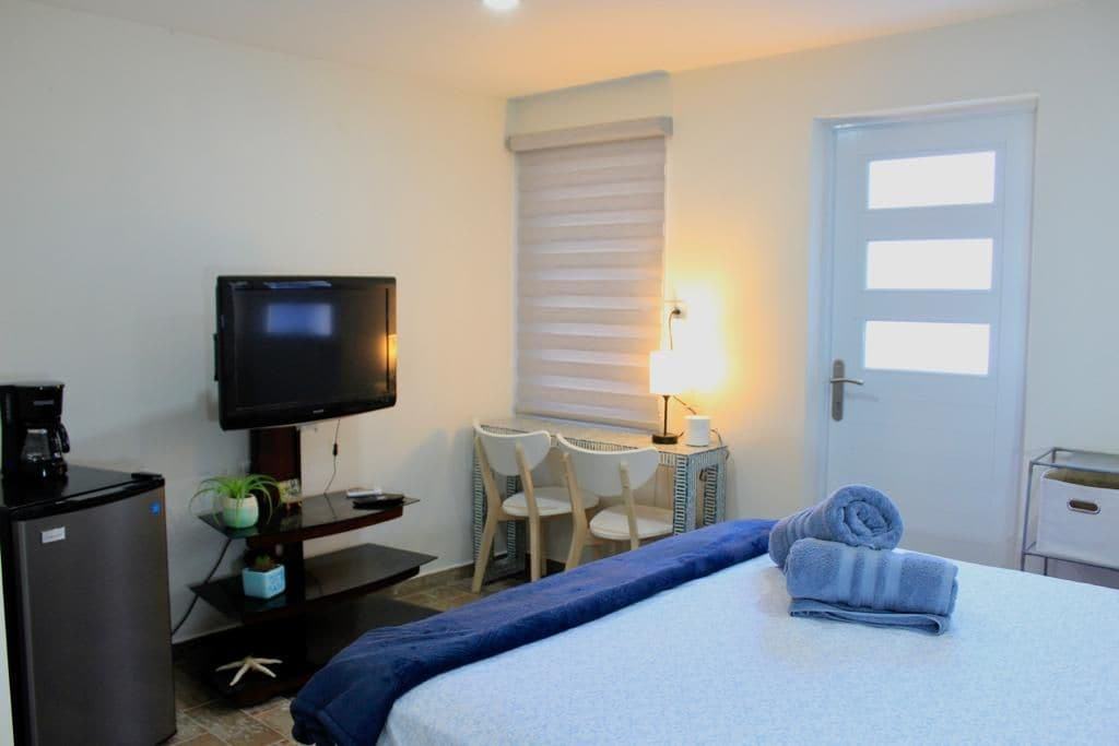 Neka sve bude jednostavno u ovom mirnom smještaju koji se nalazi u centru grada. Ovaj mali studio apartman je opremljen svim osnovnim sadržajima koji su vam potrebni. Ima kompletnu kuhinju, 1 kupatilo, 1 krevet pune veličine, pametni TV, Wi-Fi i još mnogo toga! Odlična lokacija samo nekoliko minuta od plaža, restorana, barova, apoteka i supermarketa. Parque Colon je udaljen samo nekoliko koraka sa osvijetljenim košarkaškim terenom i igralištem.