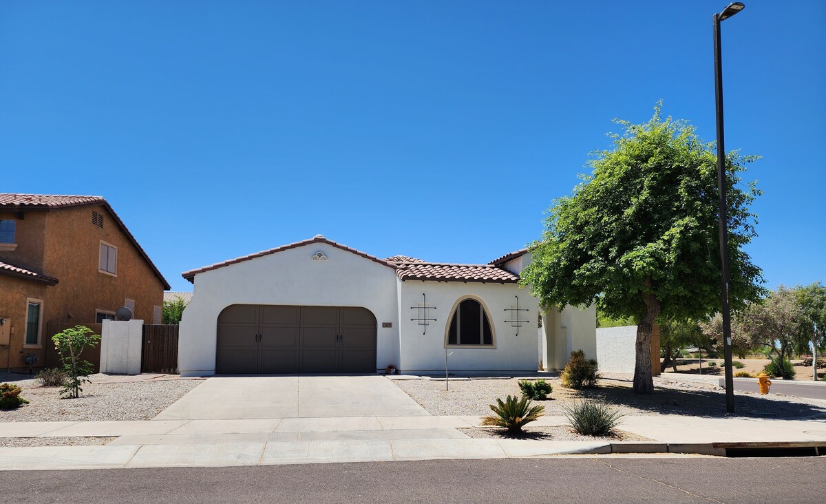 Great place for a family or two! 2450 sq foot w/a fantastic layout, 10’ ceilings & a light open feeling.2 parking spots. All of the comforts of home & our favorite place to be. You will love Estrella Mtn Ranch community & the amenities of the area.Recommend googling the location to take advantage of all there is to do outside your door. Will discount to encourage longer stays, please email if you are planning so we can discuss. No overnight street parking Short-Term Rental License STR000098