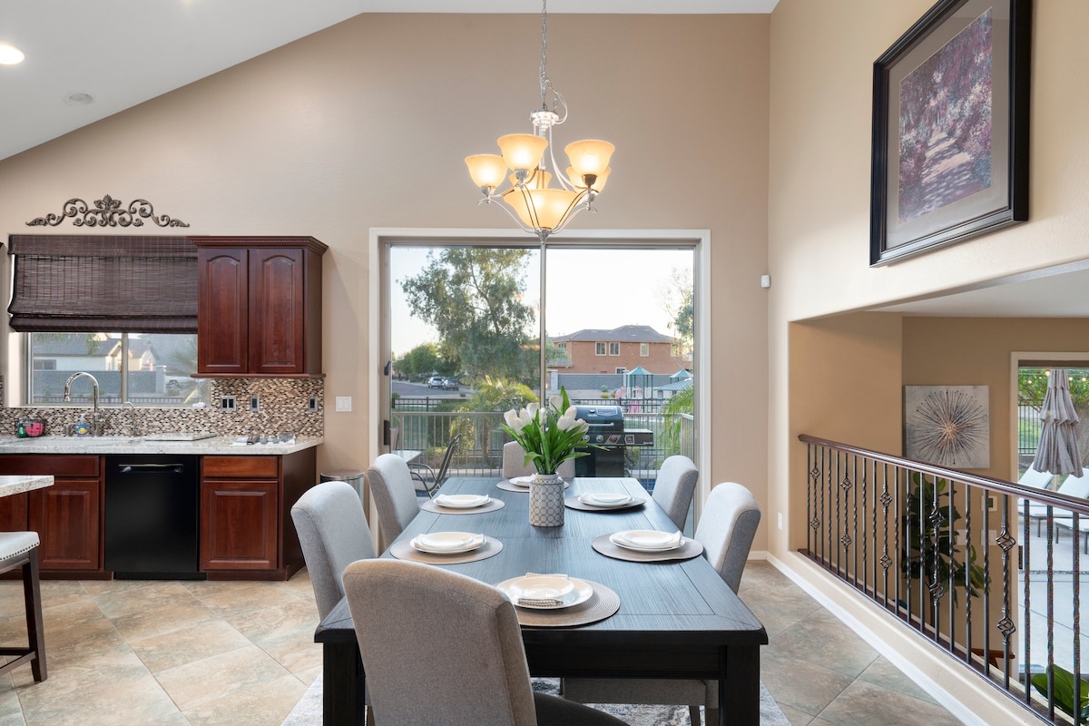 Opustite se u Rancho Redondo! 4 spavaće sobe, 3 kupatila, preuređeno. Uživajte u modernim vibracijama iz sredine veka u ovoj kući na ranču iz 1960-ih. Privatni prostor obuhvata prostrano dvorište, elegantan grijani bazen i hidromasažnu kadu, gasni kamin i prostor za roštilj. Stadion Cardinals (stadion State Farm) udaljen je oko 8 milja, sa prolećnim prostorima za obuku u Vest Veliju, kupovinom i zabavom u blizini. Večerajte u odmaralištu Wigwam, koje je udaljeno samo od bloka. To su svi sadržaji koji su vam potrebni da biste se lepo odmorili!
