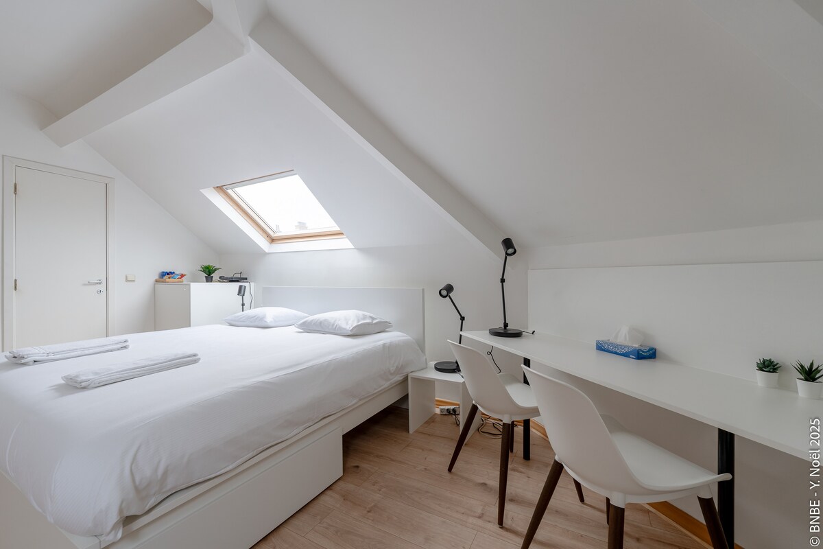 Dolazite li u Brisel zbog posla ili zadovoljstva? Pronašli ste savršen smještaj! Naš stan se nalazi u prelijepom području koje će vam se definitivno svidjeti. Sa brojnim autobusima i tramvajima u blizini, možete stići bilo gdje u Briselu u roku od nekoliko minuta, uključujući i zadivljujuću Evropsku četvrt. Nakon dugog dana, zamislite da se vratite u lijepo uređen prostor, dizajniran imajući na umu ukus i udobnost. Radujemo se što ćemo vas ugostiti!