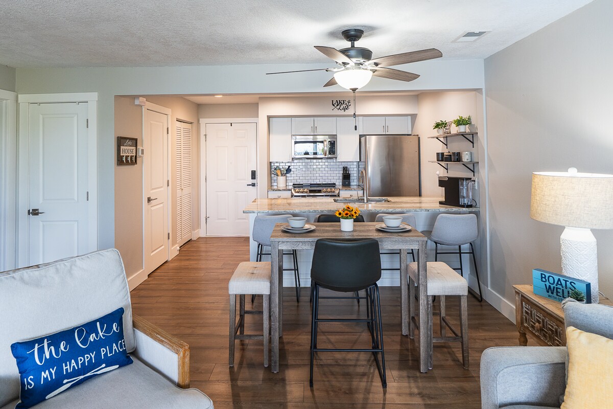 Pobjegnite u ovaj penthaus na jezeru Table Rock Lake, nudeći neometan pogled na gornji sprat i savršeno okruženje za romantičan odmor, porodični odmor ili putovanje s djevojkama (ili momke ako to rade)! Samo nekoliko minuta od Silver Dolar Sitija, Dogvud kanjona i 30 minuta od Branson Stripa. Uživajte u nadsvođenim plafonima, kuhinji, kauču na razvlačenje, mašini za pranje/sušenje veša i privatnoj terasi sa zadivljujućim pogledom na jezero. Ostvarite 10% popusta na ulaznice kada rezervišete ovaj kondominijum. Opustite se, istražujte i stvorite trajne uspomene!