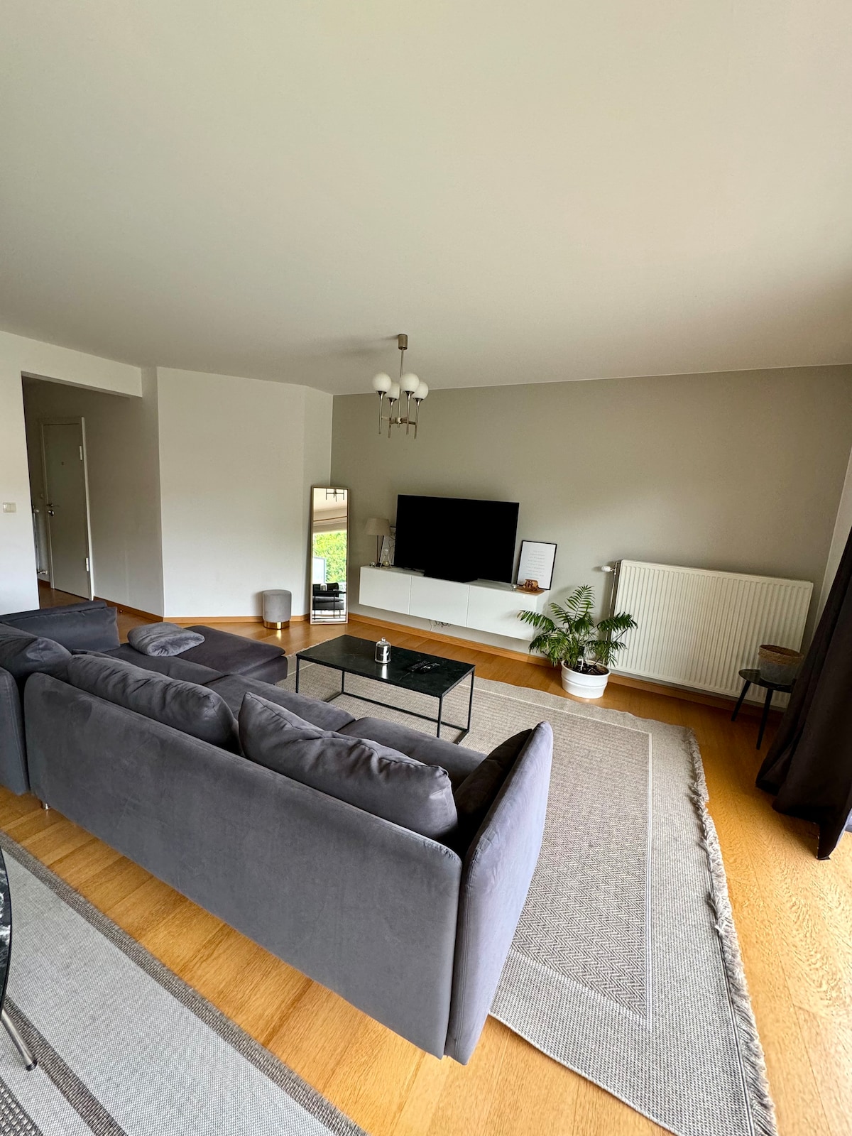 Zdravo! Ovaj svetao smeštaj (+/- 55m2) se sastoji od spavaće sobe sa bračnim krevetom (ili dva kreveta za jednu osobu), kupatila i dnevnog boravka sa opremljenom kuhinjom. Komšiluk je miran i nalazi se 20 minuta od centra grada direktnim prevozom. U blizini se nalazi supermarket (150 m), park, šoping i železnička stanica. Jedva čekamo da vas upoznamo!