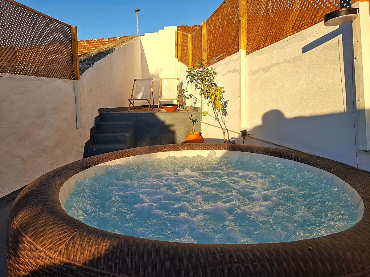 Villa V3 for holiday in the Alentejo, in the quiet village of São Bartolomeu do Outeiro, more known as the viewpoint village, for its beautiful views of the Alentejo plain. Vila se sastoji od tri spavaće sobe, dvije sa bračnim krevetom i jedne sa dva kreveta za jednu osobu, dnevnog boravka sa dva kauča, sobe sa kaminom, unutrašnjeg kupatila i spoljašnjosti, kuhinje, dvorišta sa jacuzzijem i malog prostora sa četvrtbolom. Regionalne korpe za proizvode/doručak - dodatna usluga.