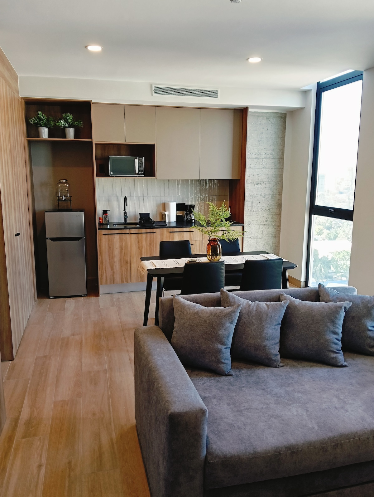 Posvećeni smo tome da vaš boravak bude 100% prijatan tako što ćemo voditi računa o svakom detalju, čišćenju i usluzi smeštaja. Po dolasku možete da uživate u predivnom pogledu sa balkona uz besplatnu bocu vina. Objekat se nalazi u najboljem delu Gvadalahare, samo 5 minuta hoda od podmarketa Čapultepec, koji je Tajmoud nazvao Time Out kao najzanimljiviji deo grada na svetu! Okružen neverovatnim mestima za jelo i jednim od najboljih noćnih života u zemlji.