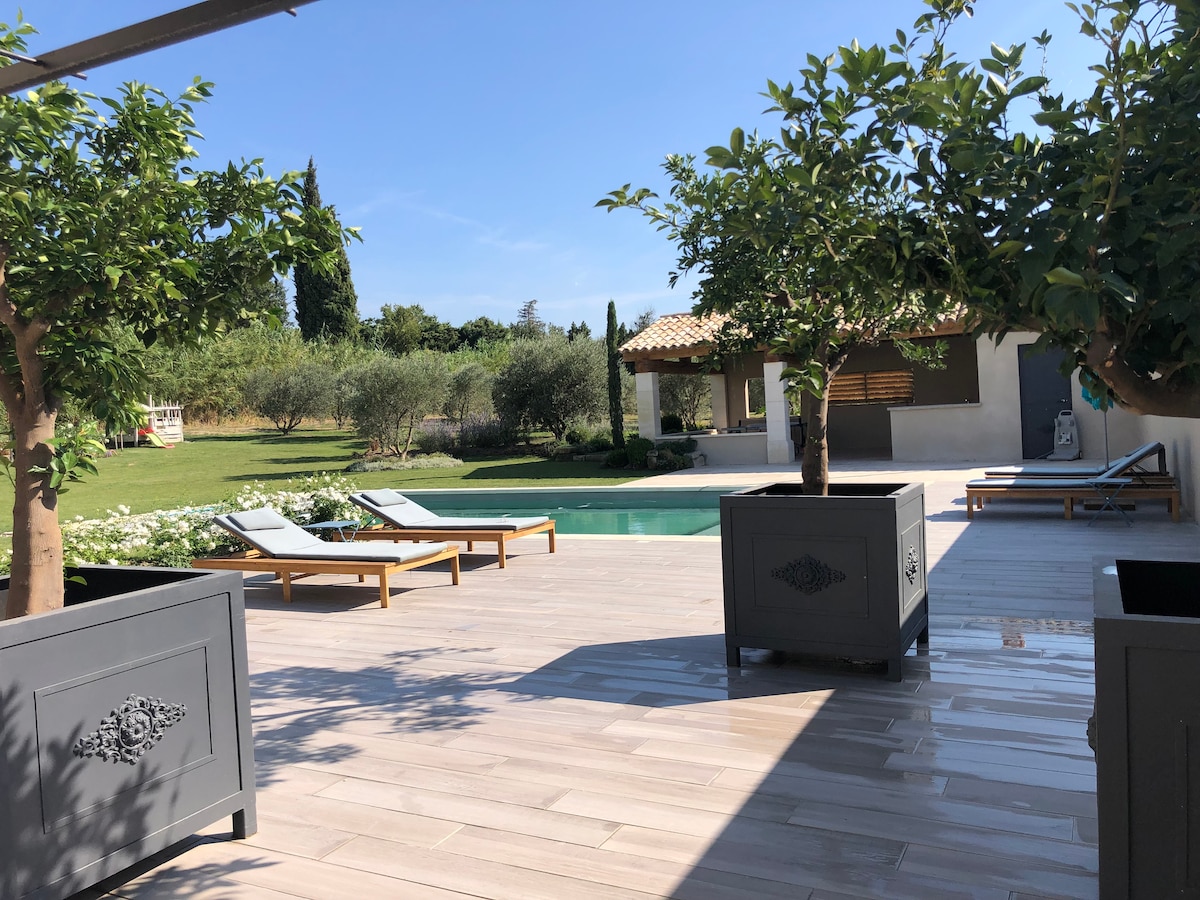 Nezavisni i elegantno uređeni studio. Zaronite u osvijetljeni bazen danju i noću, ispružite se u ležaljkama da završite knjigu ili gledajte kako masline sazrijevaju, produžite igru petanka na boulodromu uz aperitiv i večeru na terasi dok uživate u zalasku sunca nad planinskim lancem Alpilles! Sve je urađeno da vaš boravak bude nezaboravan. „Tamo je sve red i ljepota, Luksuz, smirenost i senzualnost.” Ch. Beaudelaire – Poziv na putovanje