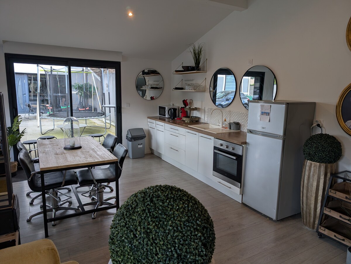 Bienvenue dans mon appartement T2 moderne et lumineux de 45 m² 🏡, tout proche de Bordeaux. Idéal pour les voyageurs professionnels ou les séjours longue durée. Situé au 4ᵉ étage d’une résidence sécurisée avec ascenseur et parking, il dispose d’une terrasse avec vue dégagée, fibre haut débit et de tout le confort : TV, lave-linge, lave-vaisselle, machine à café. Décoration épurée et ambiance chaleureuse. À proximité des restaurants, commerces, pharmacie, supermarché et boulangerie.